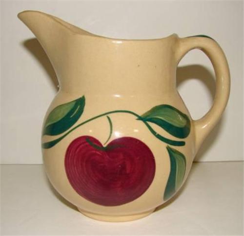 WATT APPLE DECORATED CREAM PITCHER. Shows no signs of chips or crazing. Marked on bottom “15”. 5.5” H