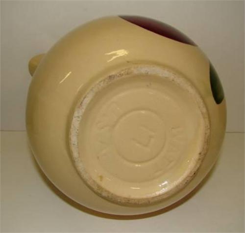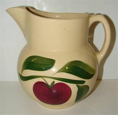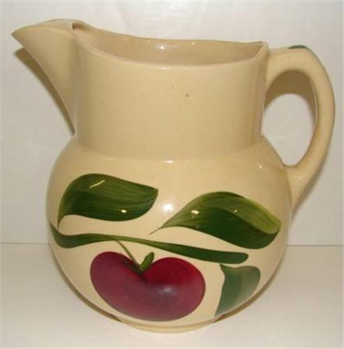 WATT APPLE DECORATED PITCHER. Shows no signs of chips or crazing. Marked on bottom “17”. 8” H