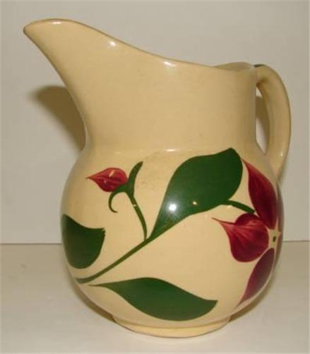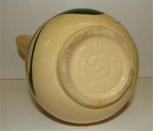 WATT FLORAL DECORATED CREAM PITCHER. Shows minor chipping at spout. Marked on bottom “15”. 5.5” H