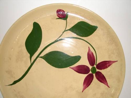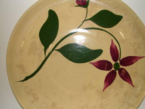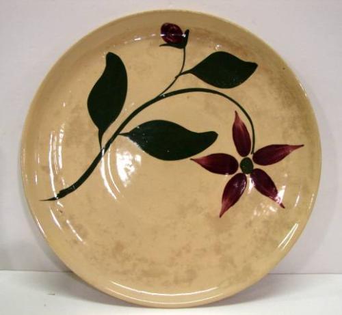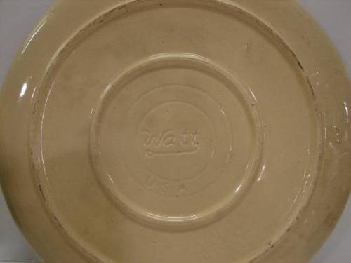 WATT FLORAL DECORATED PLATTER. Shows signs of crazing throughout. Shows minor chipping on bottom. Marked “Watt” on bottom with no number. 15” Dia.