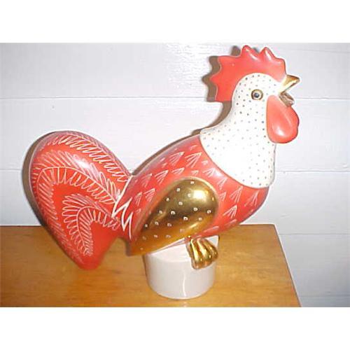 WAYLAND GREGORY ROOSTER FIGURE, SIGNED 13 1/2 H X 13 1/2 L X 5 1/2 D GOOD COND