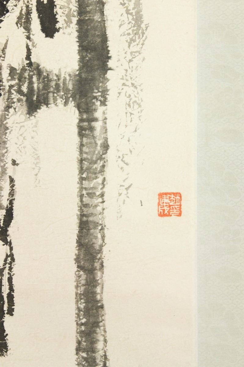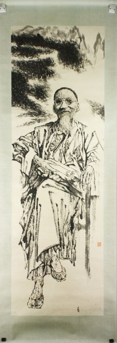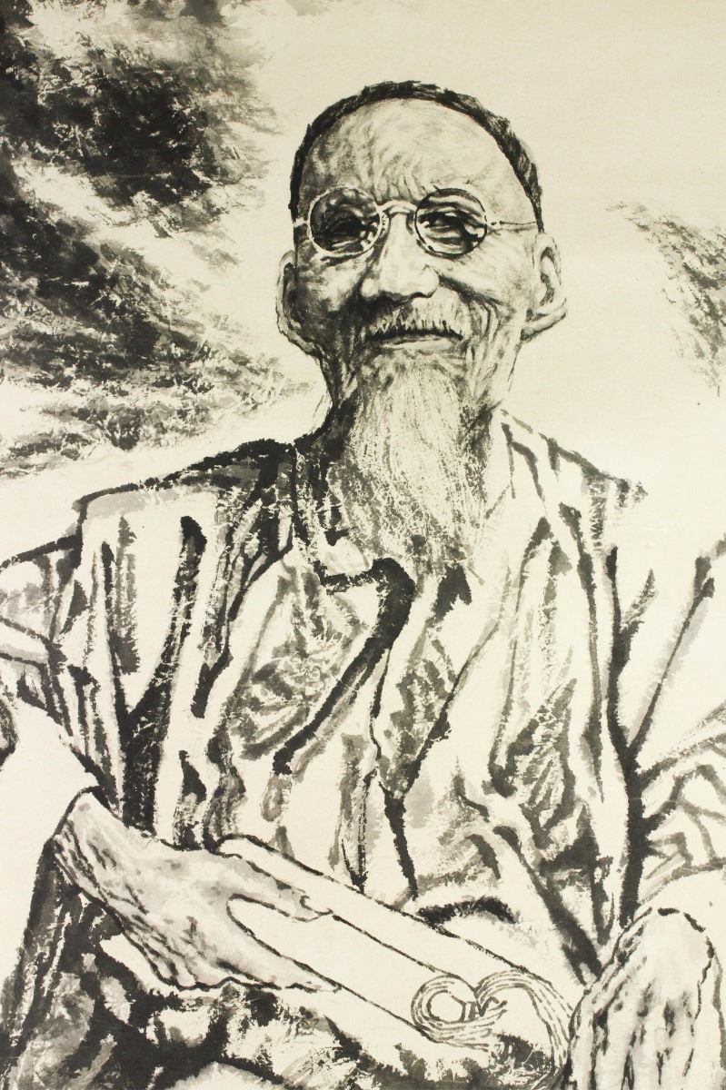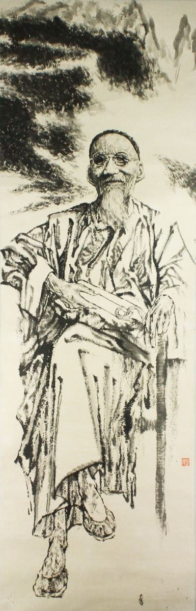 Portrait of Zhang Daqian; Chinese ink on paper; inscribed with one red artist seal; 220 cm X 60 cm