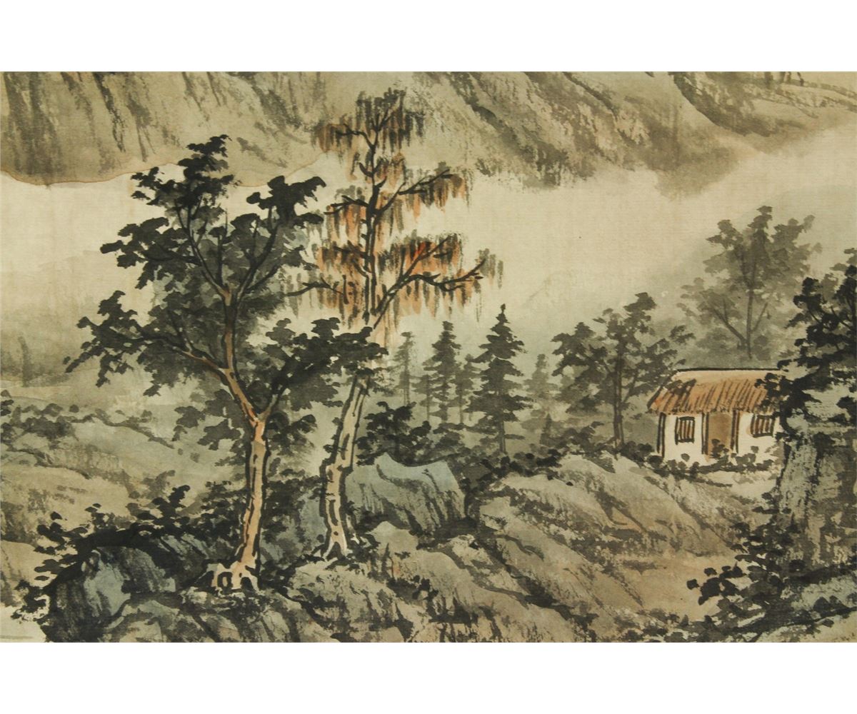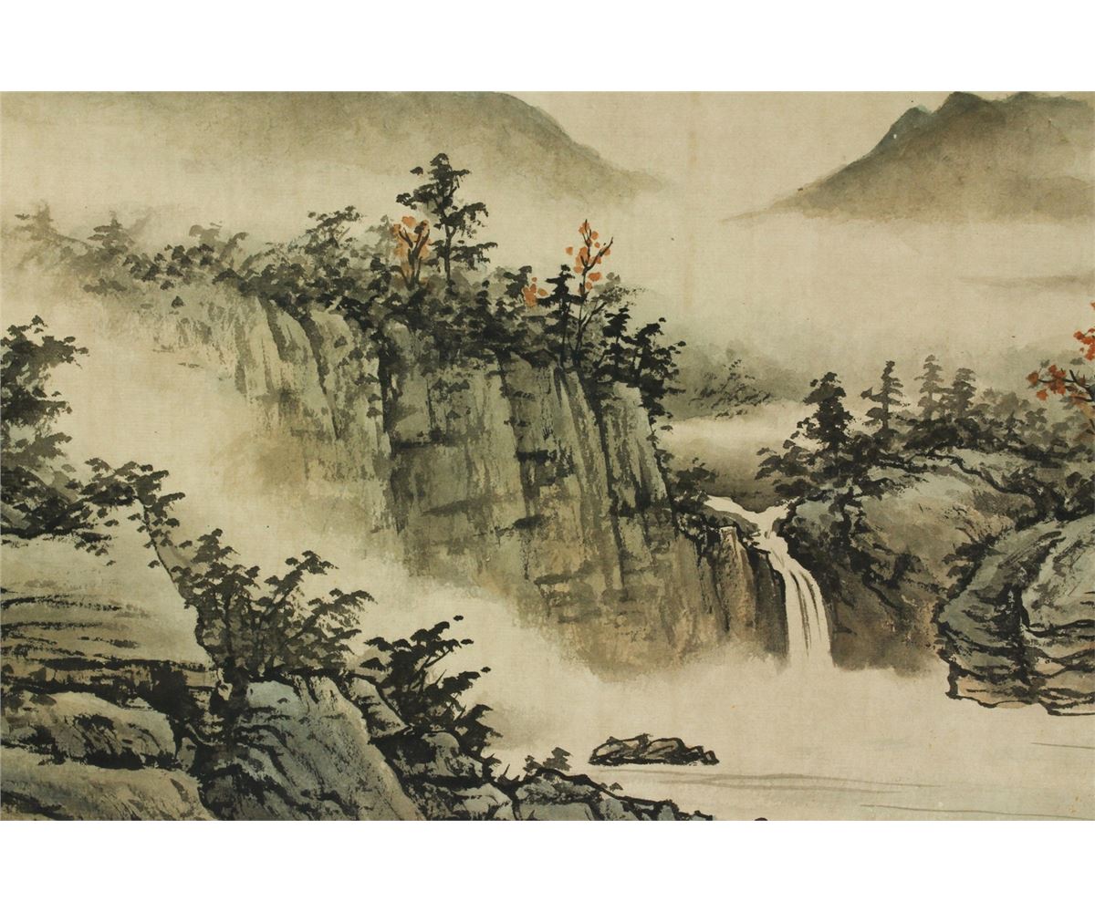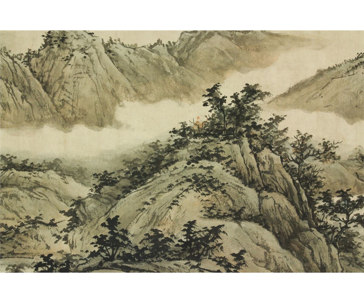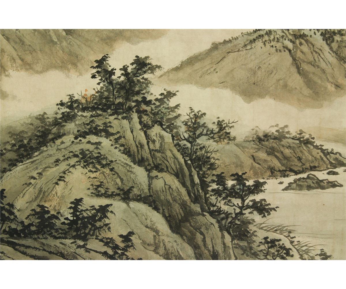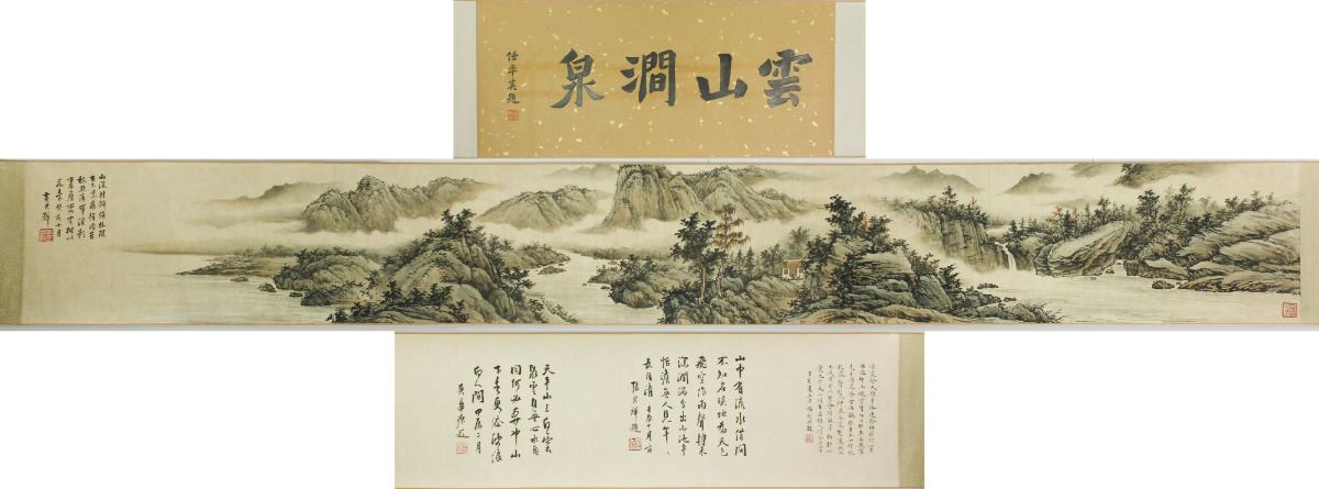 Mountainous landscape; Chinese ink and watercolour on paper; hand scroll; signed Huang Junbi and inscribed with two artist seals; 29.5 cm X 68 cm, 29.5 cm X 240 cm