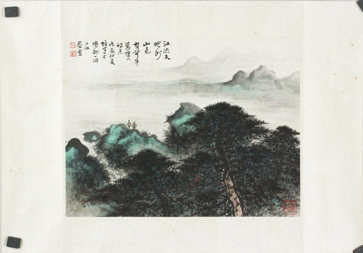 Mountainous landscape; Chinese ink and watercolour on paper; signed Li Xiongcai and inscribed with two artist seals; 33.5 cm X 43.5 cm