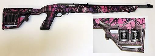 FAMILY:10/22 Series MODEL:10/22 TacStar TYPE:Rifle ACTION:Semi-Auto FINISH:Blue STOCK/FRAME:Camo Stock STOCK/GRIPS:Muddy Girl TacStar Adjustable CALIBER/GAUGE:22 LR CAPACITY:10+1 # OF MAGS:3 MAGAZINE DESC:10 Rd. SIGHTS:Open Rifle Sights ADDL INFO:Can Accomodate Bull Barrel ADDL INFO:Stoweaway Picatinny Rail ADDL INFO:Stock Storage for 2 BX-1 Mags EXCLUSIVE:TALO EXCLUSIVE