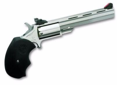 NONAAMMM PRODUCT DETAILS FAMILY:Mini-Master Series MODEL:Mini-Master TYPE:Revolver ACTION:Single Action FINISH:Stainless STOCK/FRAME:Steel Frame CALIBER/GAUGE:22 Magnum CAPACITY:5 BARREL:4" SIGHTS:Fixed