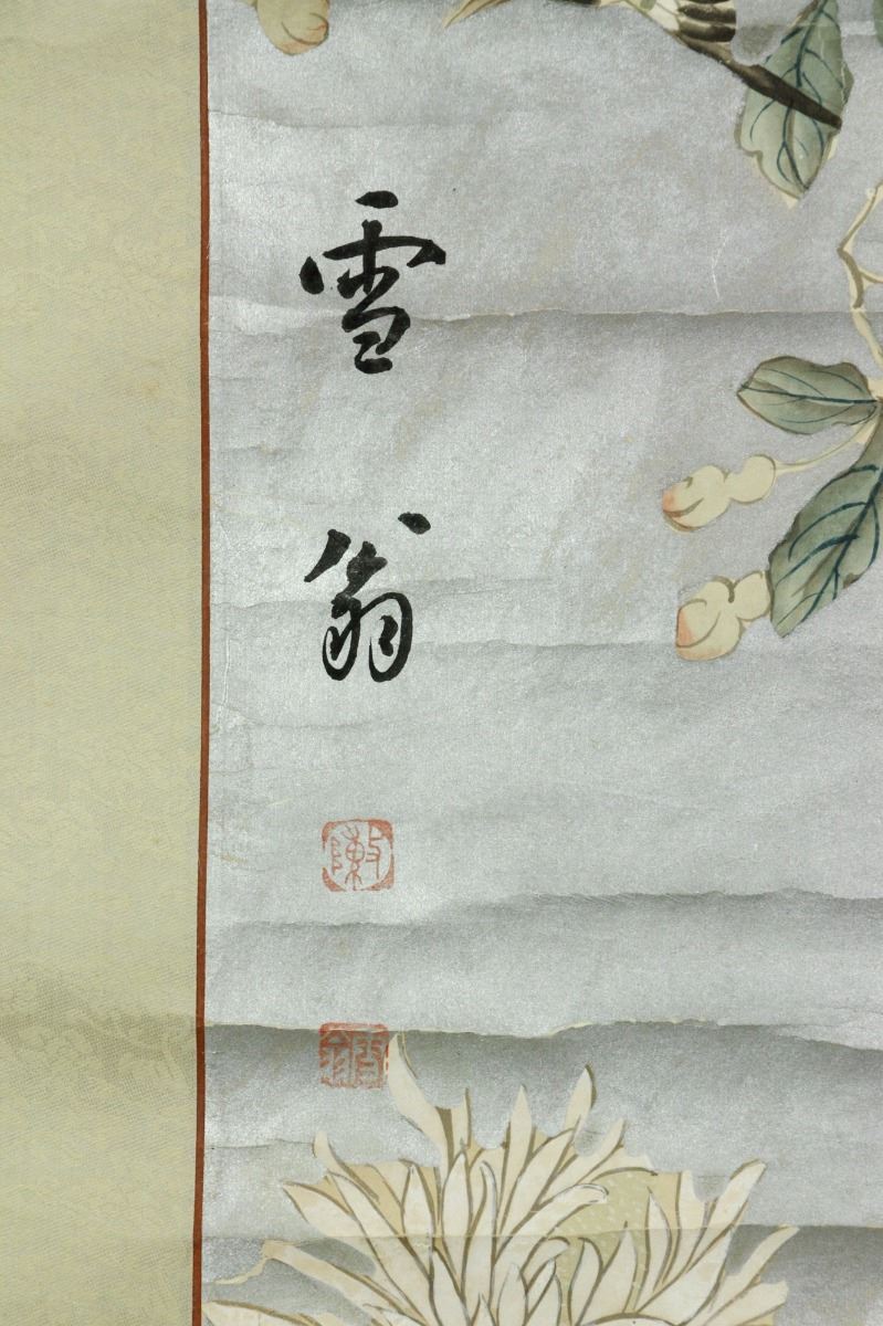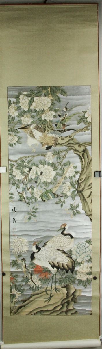 Cranes, birds and ponies; Chinese ink and watercolour on paper; signed Chen Zhifo (Xue Weng) and inscribed with two artist seals; 145 cm x 50 cm