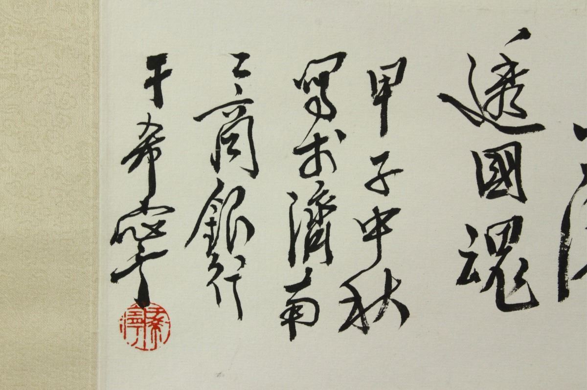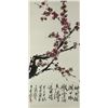 Prunus branch; along with script calligraphy; Chinese ink and watercolour on paper; hanging scroll; signed Yu Xining and inscribed with one artist seal; 69 cm X 34 cm