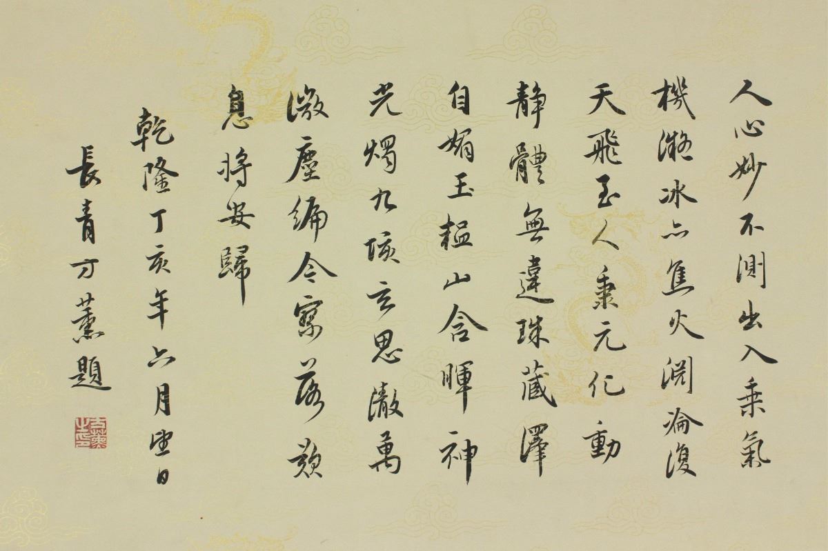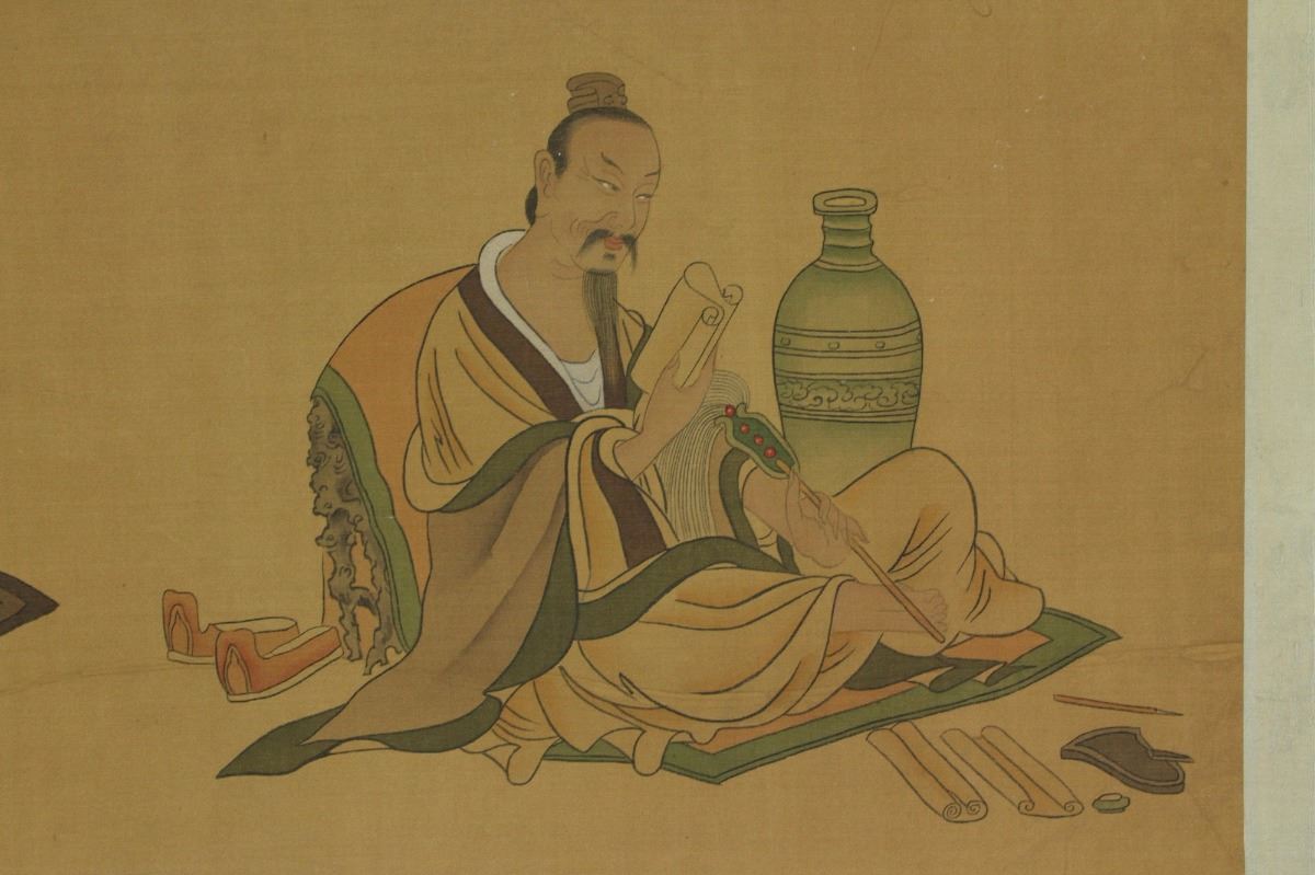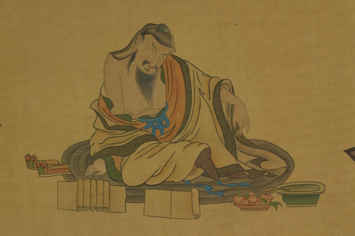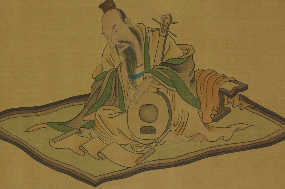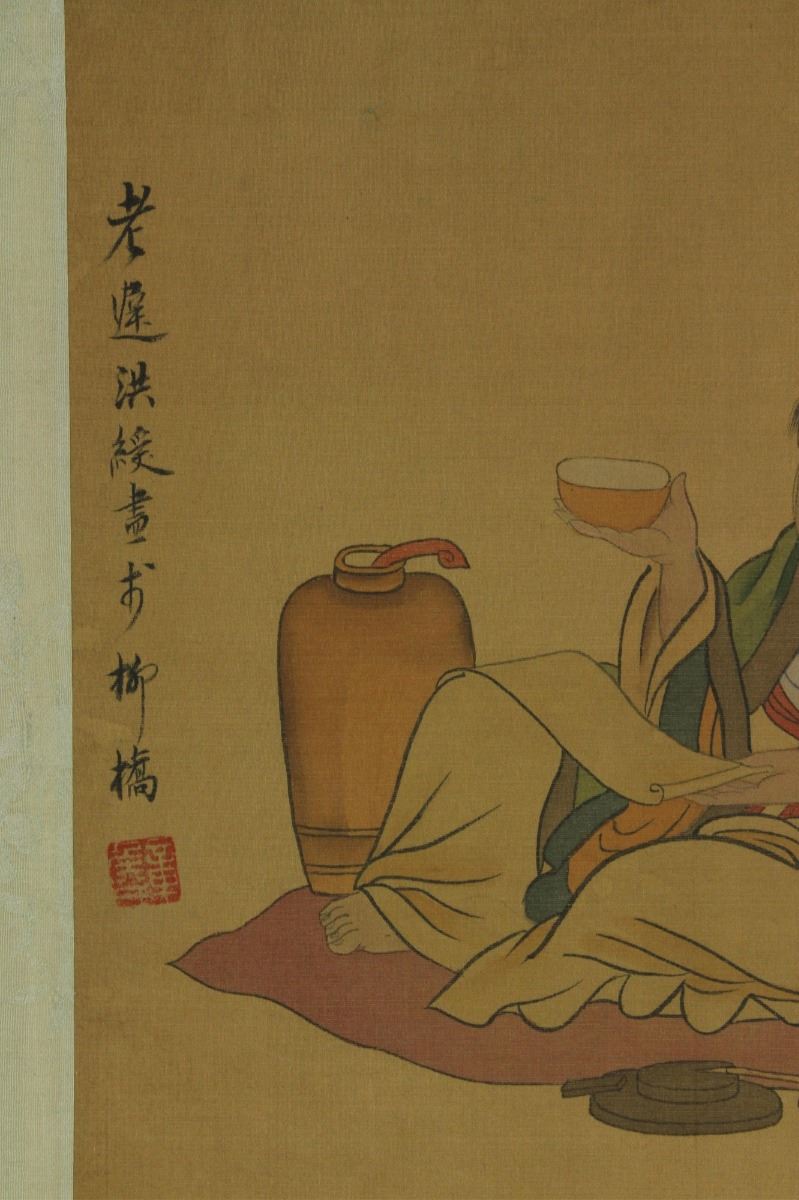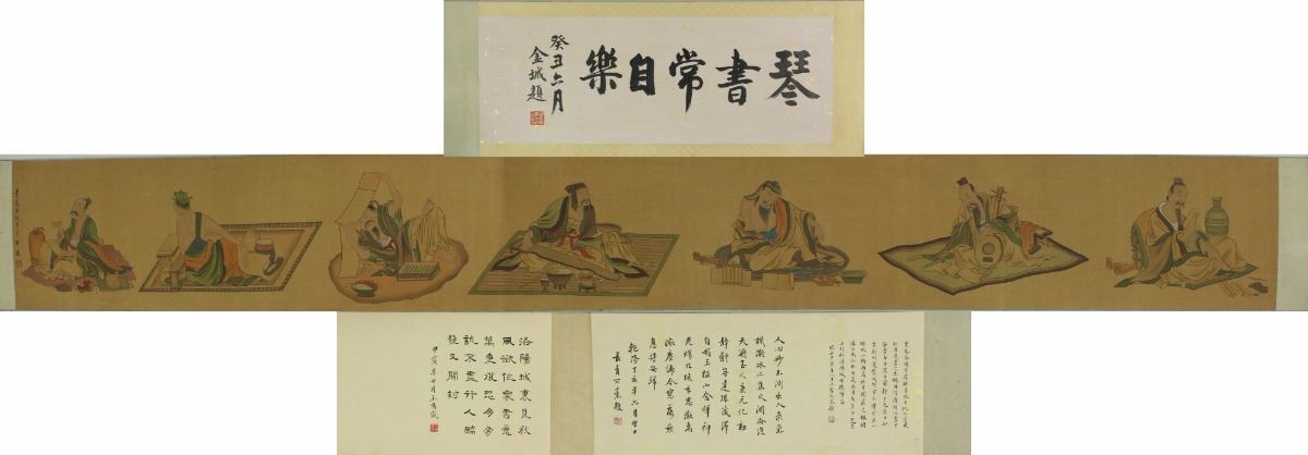 Scholars playing musical instruments; Chinese ink and watercolour on silk; hand scroll; signed Chen Hongshou and inscribed with one artist seal; 27.5 cm x 232.5 cm(artwork)