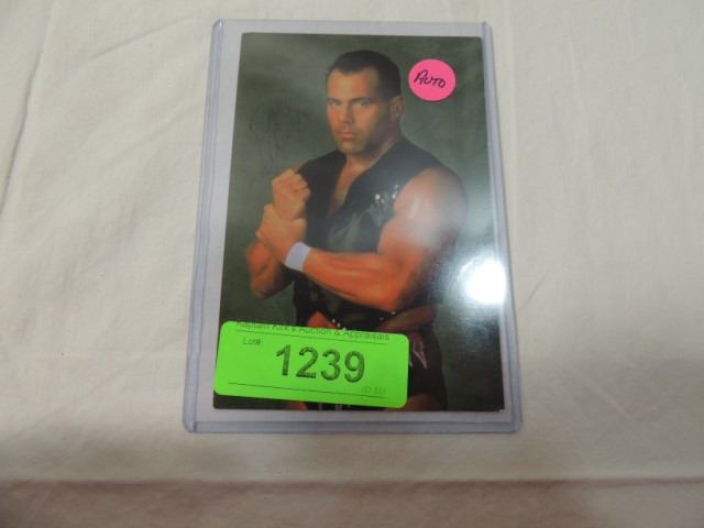 SUPERSTARS COLLECTORS CARD FROM 1998 PANINI MADE IN ITALY AUTOGRAPHED BY THE WRESTLER ON THE COVER WHO IS UNKNOWN TO US, AS SHOWN. PLEASE BE ADVISED, AND INFORMED REGARDING SIGNATURES OR AUTOGRAPHS THAT WE SELL AT