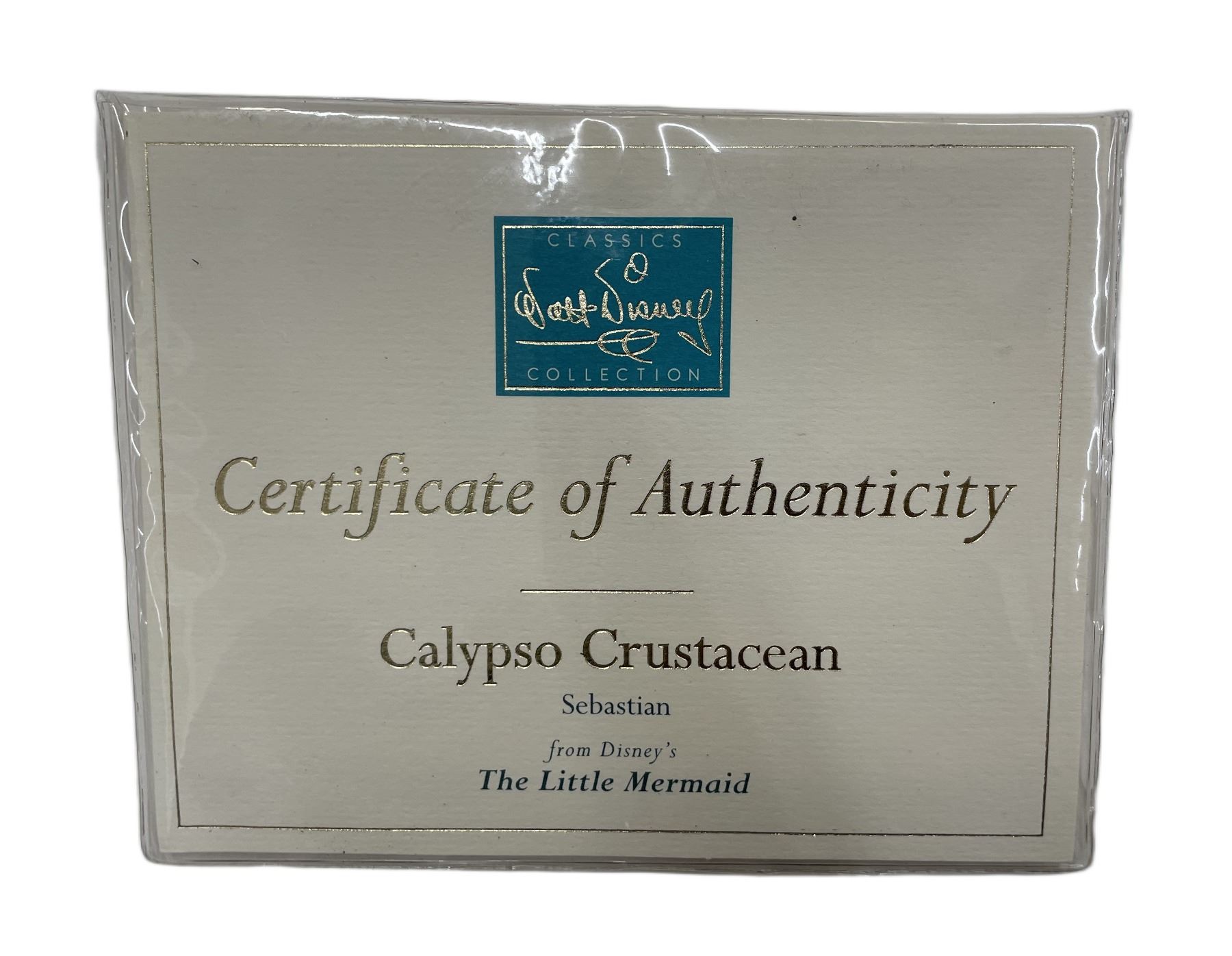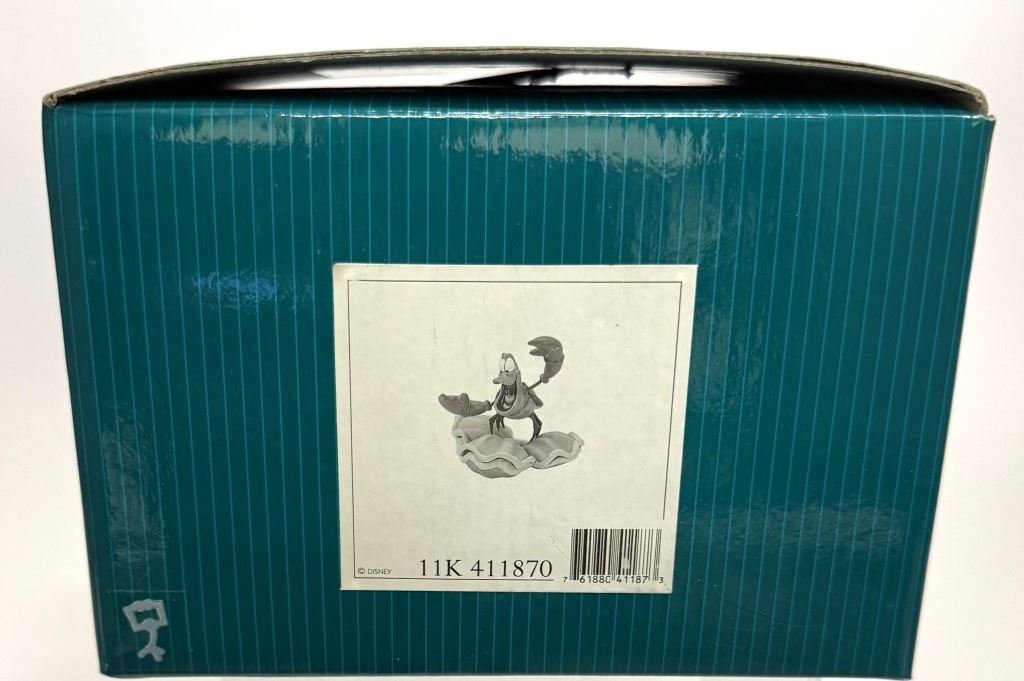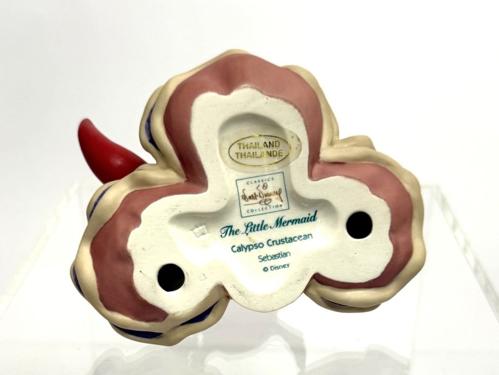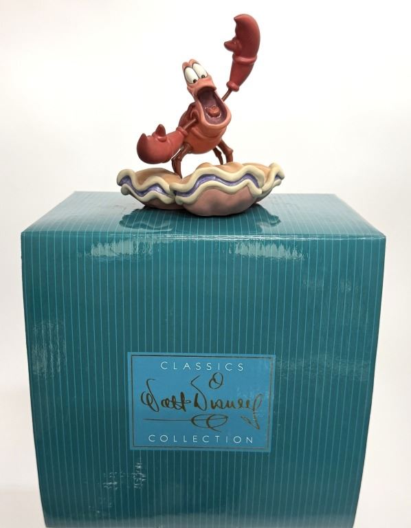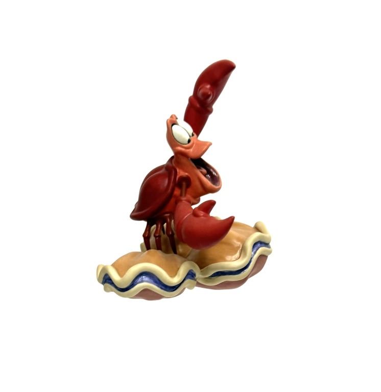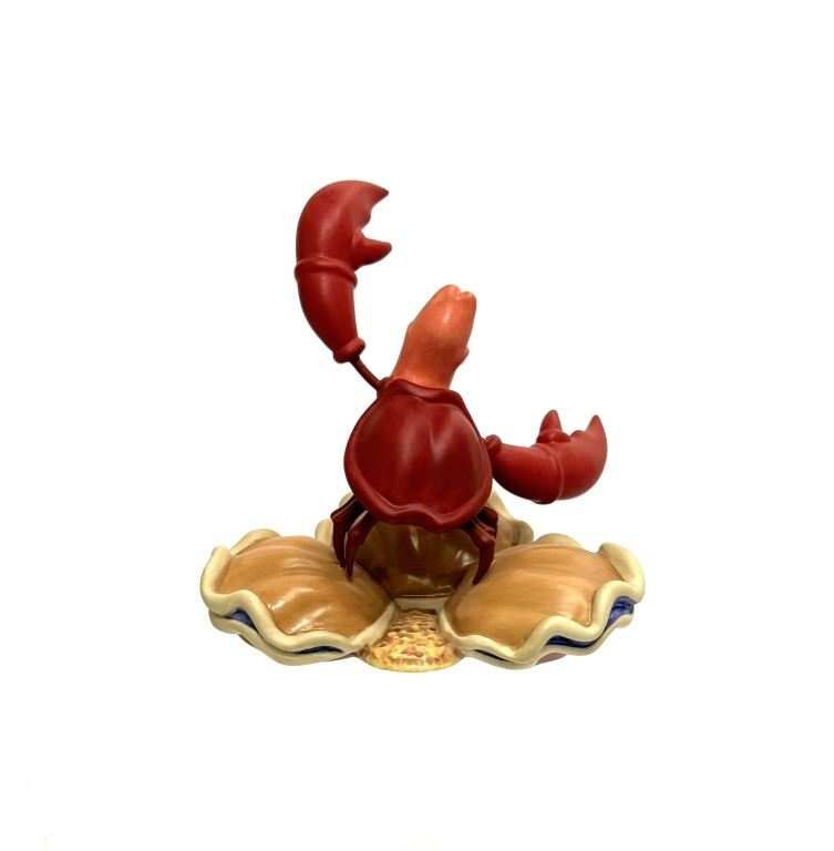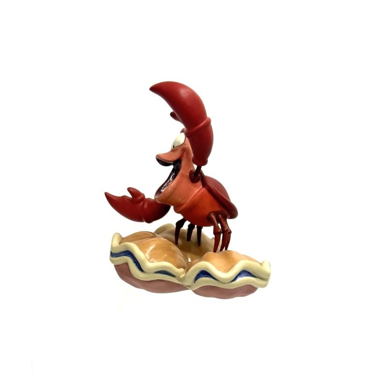 Item/Description: Walt Disney Classics Collection (WDCC) figurine titled "Calypso Crustacean" featuring Sebastian from The Little Mermaid. The figurine depicts Sebastian with his mouth open and claws raised in an expressive, musical pose while standing on a large clam shell. It was released in 1998 and retired in 1999. Includes original box and Certificate of Authenticity.