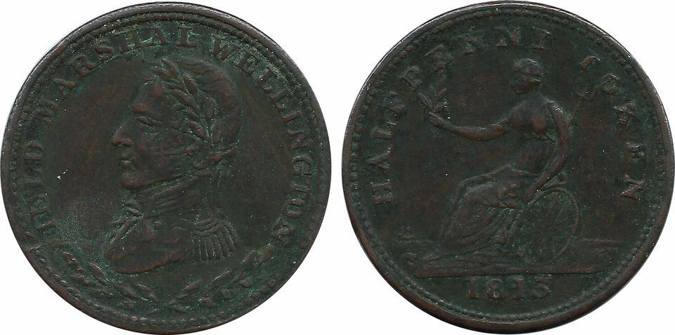 WE-1A2, Breton 969, Halfpenny token 1813, light corrosion. EF