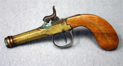 SLAGLÅSPISTOL, PIPA, MÄSSING, SIGN. UANDER KRONA, FLG 1800-TAL, L15