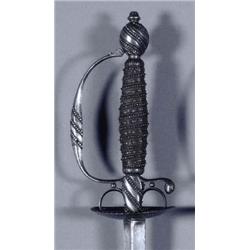 WEAPONS AND MILITARIA - A George III smallsword, the cut steel spirally beaded hilt with ovoid pommel and oval patera guard, fullered triangular 29.5in blade, 36in overall, c.1770 (see illustration)