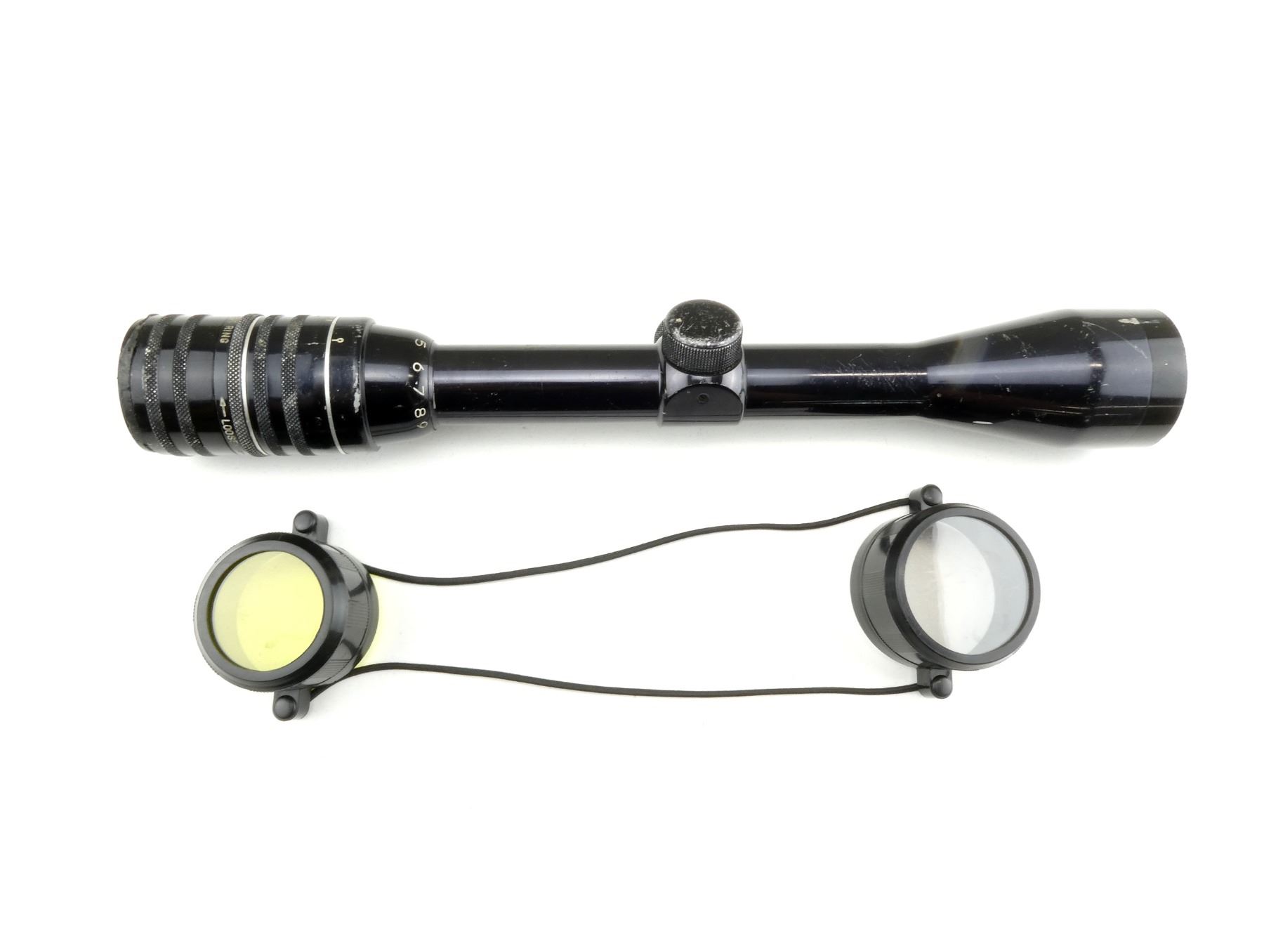 (1) CLEAR OPTICS, DUPLEX RETICLE, 1" TUBE DIAMETER, WORKING MAGNIFICATION RING, WINDAGE & ELEVATION KNOBS TURN, WITH LENS COVERS, SCOPE SHOWS WEAR & TEAR / USE MARKS. SEE PHOTOS.