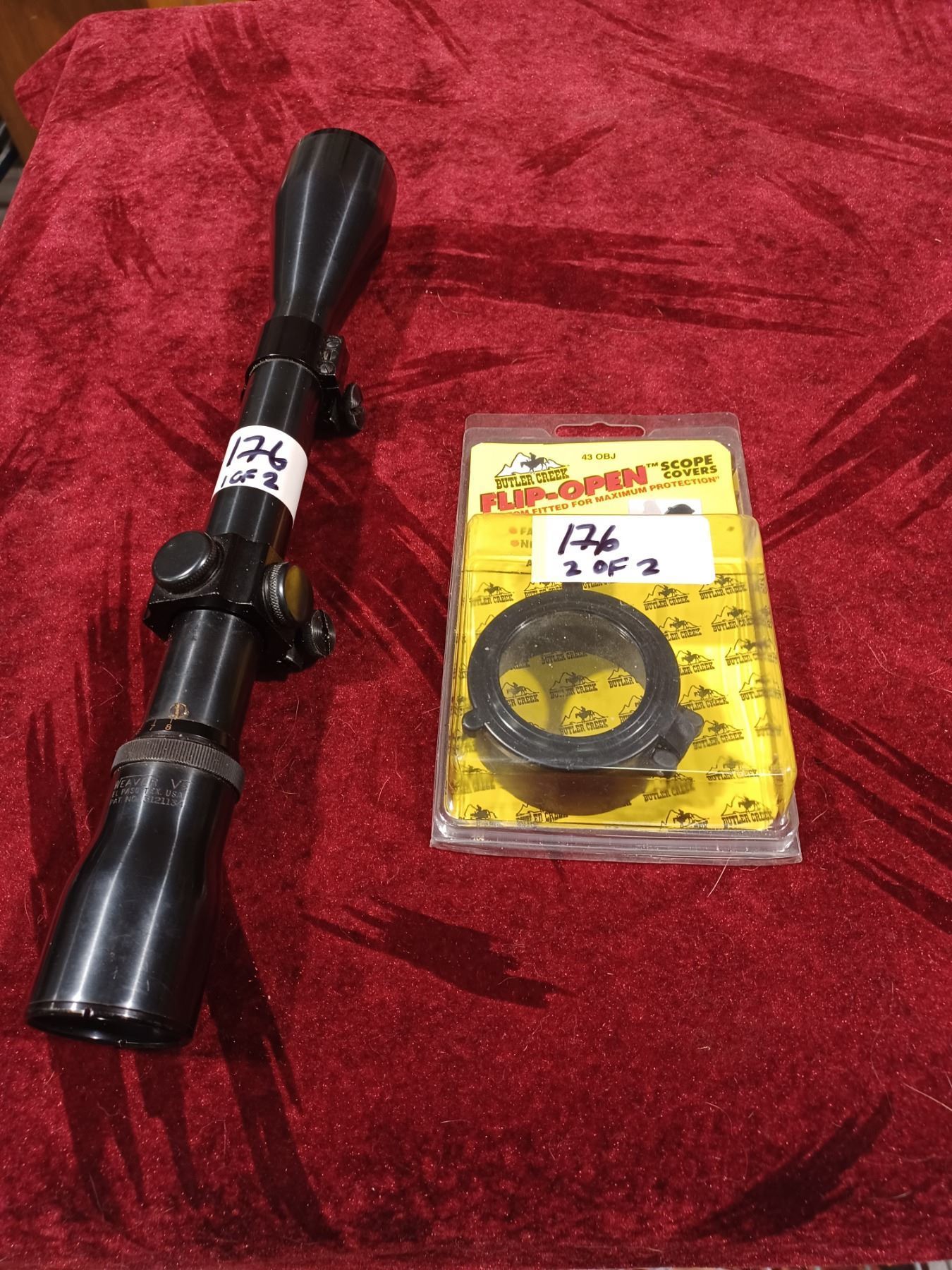 WEAVER 2.5X 8 SCOPE AND RINGS PLUS NEW FLIP OPEN SCOPE COVER