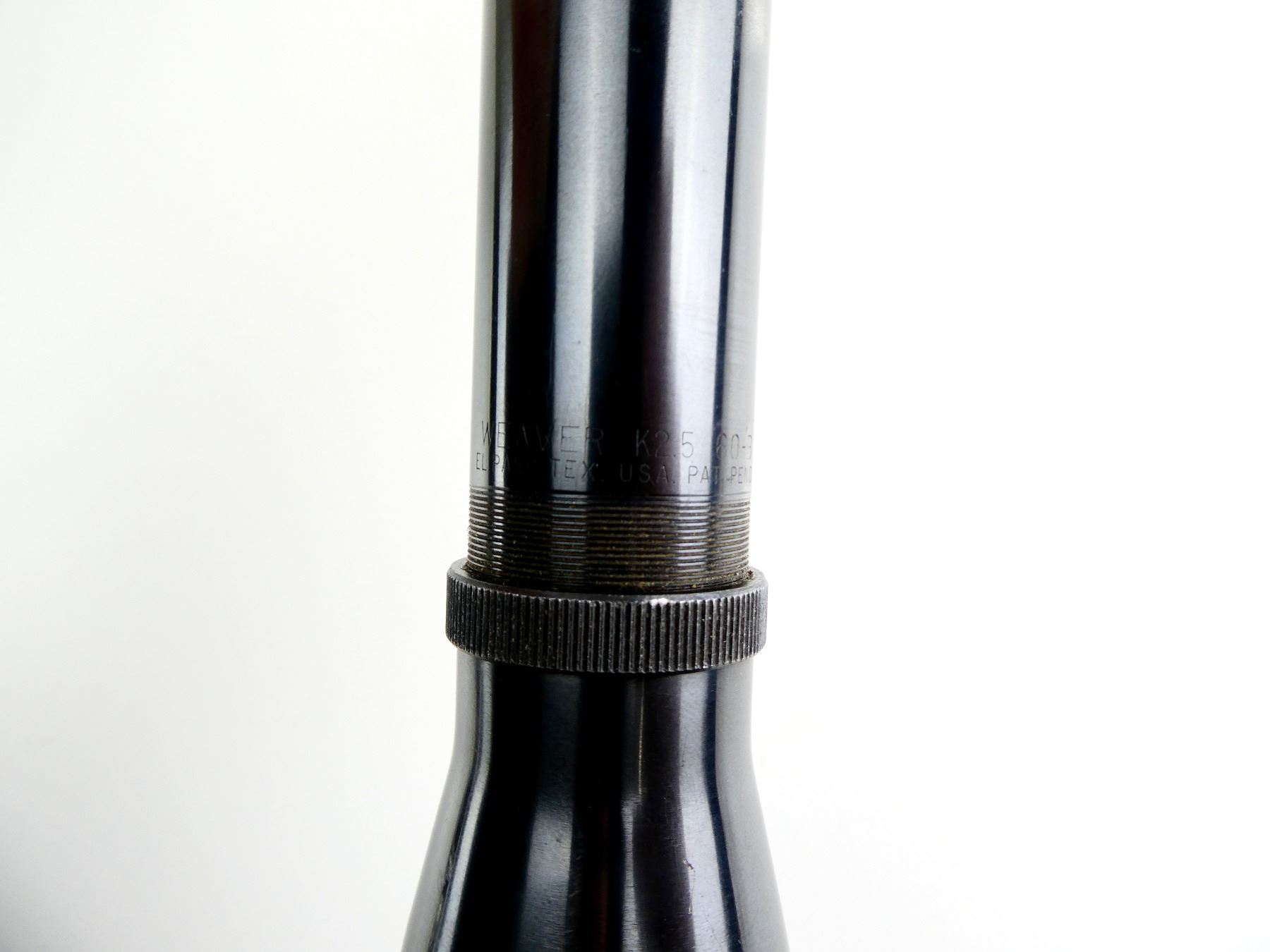 (1) CLEAR OPTICS, DUPLEX RETICLE, 1" TUBE DIAMETER, WORKING MAGNIFICATION RING, WINDAGE & ELEVATION KNOBS TURN, MARKED: "WEAVER K2.5X 60-B", ETC., SHOWS WEAR & TEAR / USE MARKS. SEE PHOTOS.