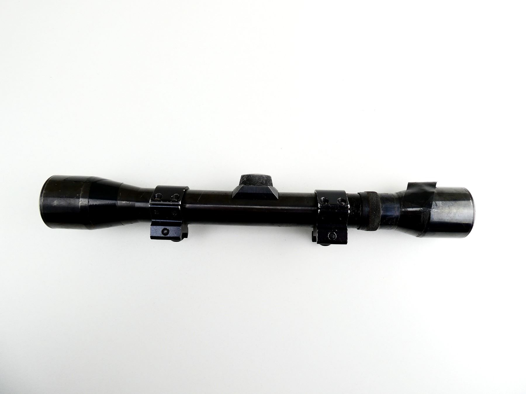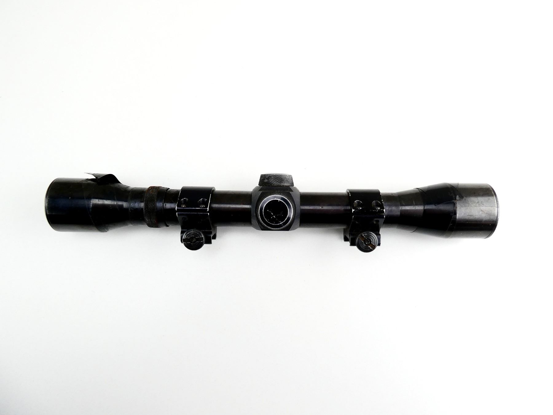 (1) CLEAR OPTICS, DUPLEX CROSSHAIR RETICLE, 1" TUBE DIAMETER, WORKING MAGNIFICATION RING, WINDAGE & ELEVATION KNOBS TURN, UNMARKED, MISSING SCREW ON REAR EYE PIECE - NOT SEALED, SHOWS WEAR & TEAR / USE MARKS. SEE PHOTOS.