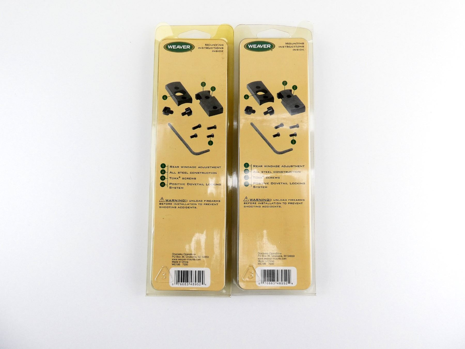 LOT INCLUDES; (2) GRAND SLAM DOVETAIL SCOPE MOUNT BASES, BLACK GLOSS STEEL, PART #: 48952, NOS IN ORIGINAL PACKAGING. MAY REQUIRE FITTING. SEE PHOTOS.