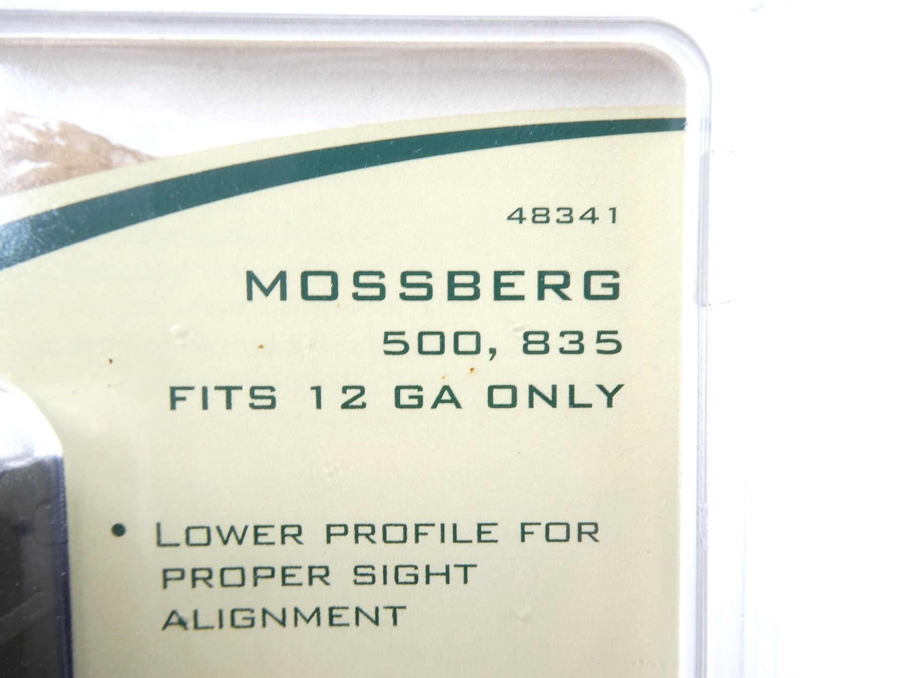 (1) FITS MOSSBERG 500 & 835 12 G. SHOTGUNS, BLACK POLYMER CONSTRUCTION, PART #: 48341, NOS IN ORIGINAL SEALED PACKAGING. MAY REQUIRE FITTING. SEE PHOTOS.