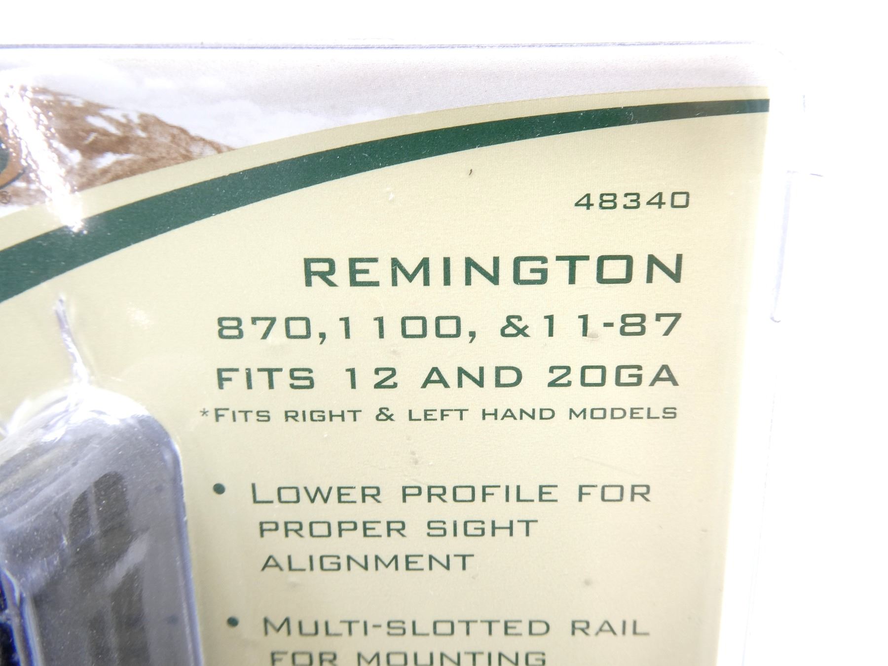 (1) FITS REMINGTON 870 / 1100 / 11-87 12 G. & 20 G. SHOTGUNS, BLACK POLYMER CONSTRUCTION, PART #: 48340, NOS IN ORIGINAL SEALED PACKAGING. MAY REQUIRE FITTING. SEE PHOTOS.