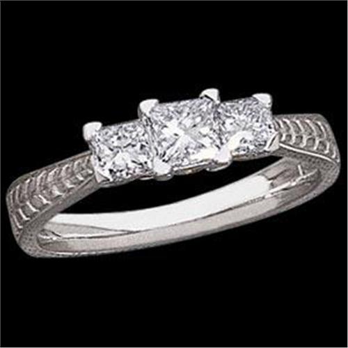 Antique Style 14k White Gold Diamond Anniversary Band Wedding Band featuring 3 Princess Cut Diamonds with an Impressive Total Weight = ONE CARAT! The Diamonds are all well matched, 'SI2' Clarity and Fine 'H' Color, with very good Cut and very good Polish. This Wedding Band is a size 6 and I can resize it for you. It is in Brand New condition!