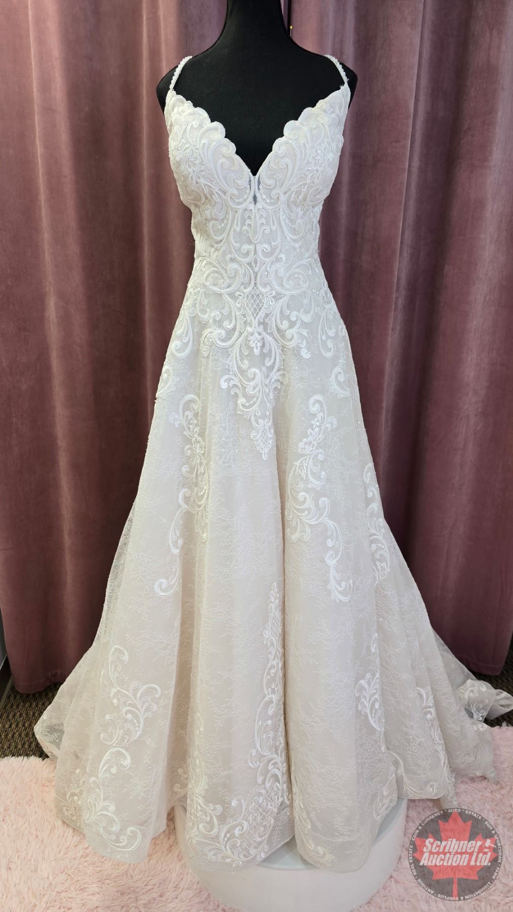 (Listing & Descriptions are a GUIDE ONLY and are subject to changes, errors, additions or deletions. The majority of dresses were fitted/cinched/clamped to mannequins for auction catalog pictures. See Tags in Pictures for Dress / Item Details if tagged. Many or all of the dresses have been tried on in the store as normal retail activity. Winning bidders may want to consider Drycleaning. Please use the provided pictures to satisfy yourself to the Conditions. There will NOT be garment bags provided, please bring your own when picking up dresses after the Auction concludes. Please bring help or assistance to load out store fixtures. Please Read & Understand All Terms & Conditions for this Auction Sale. There is designated dates & times for pick ups after the Auction.)