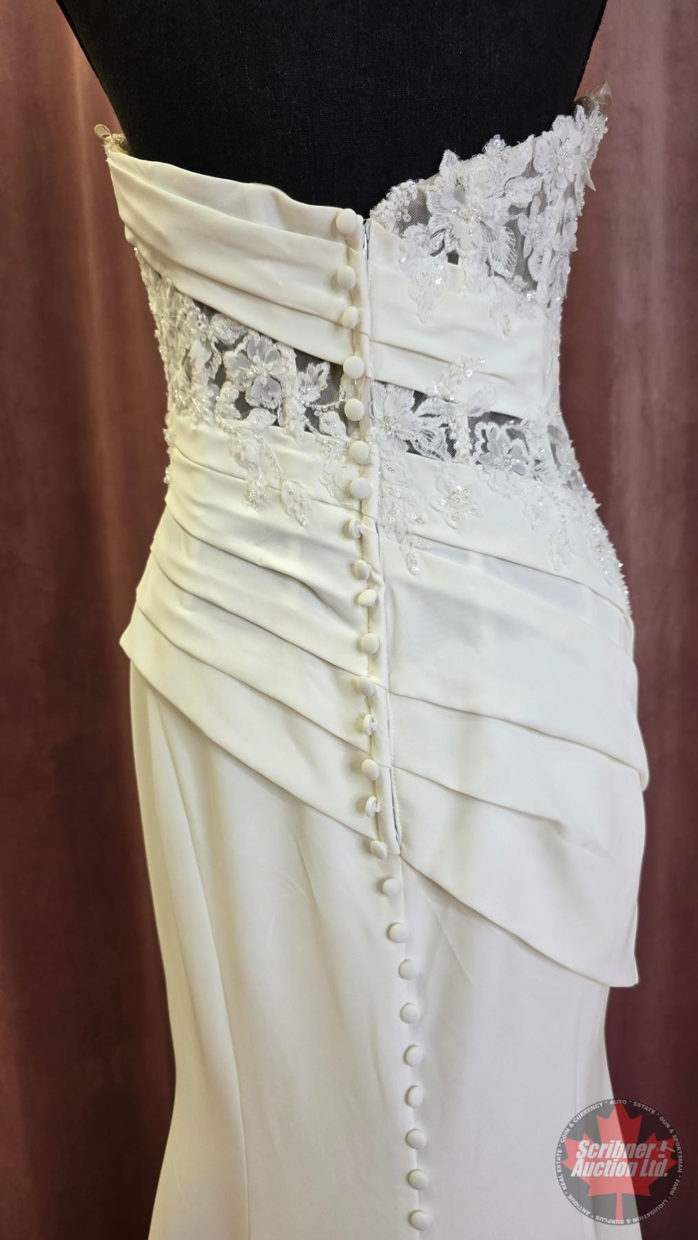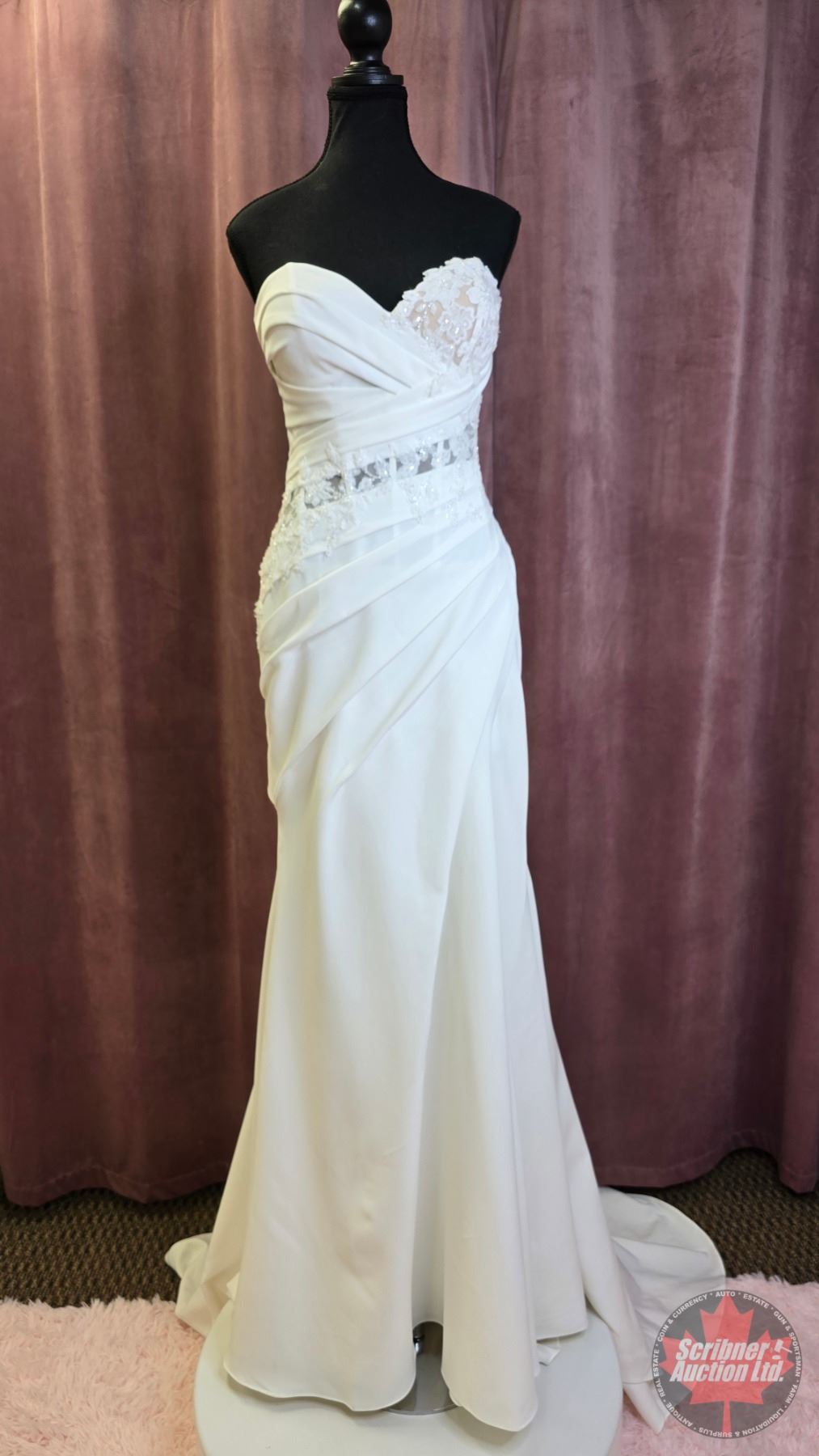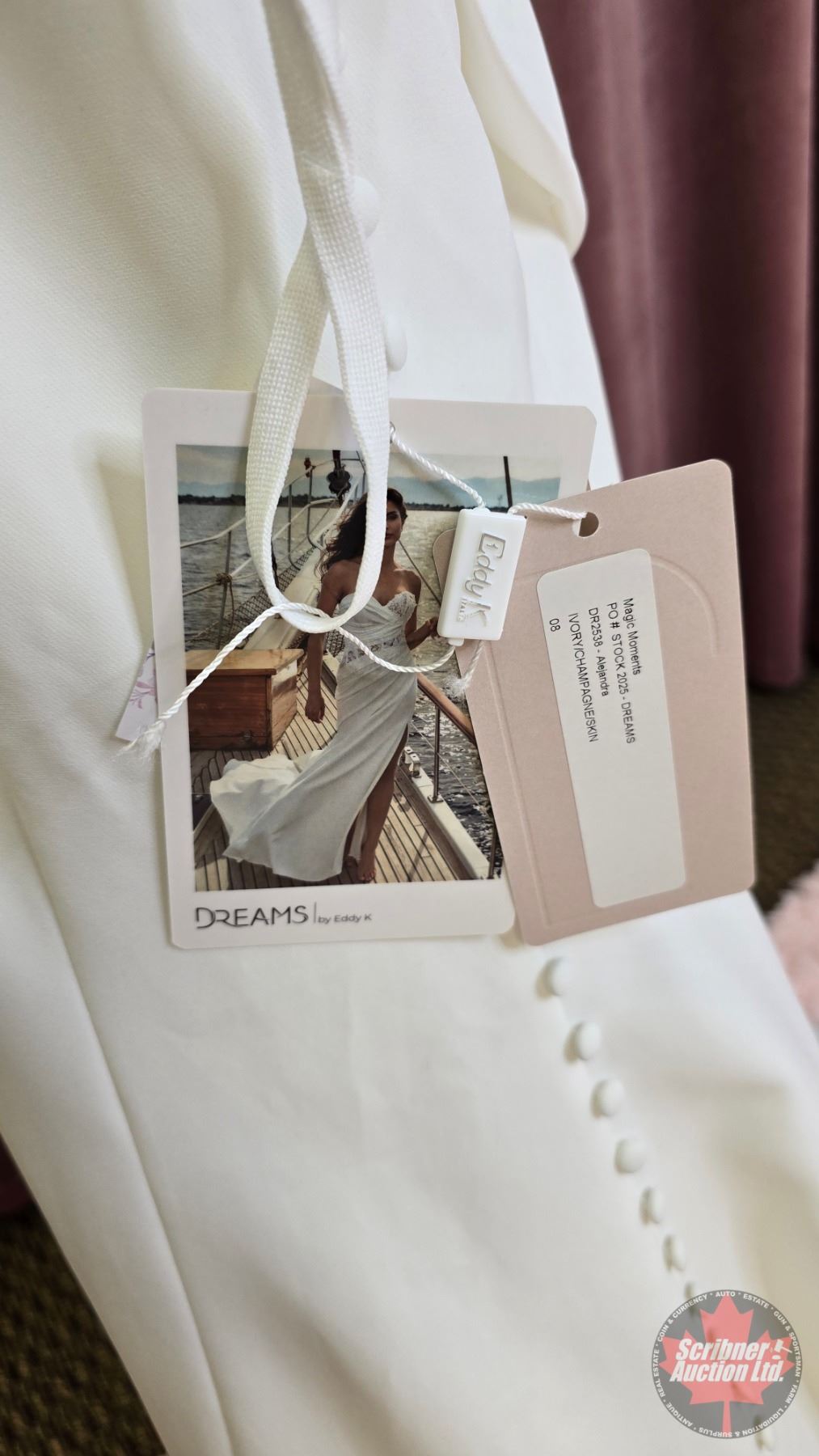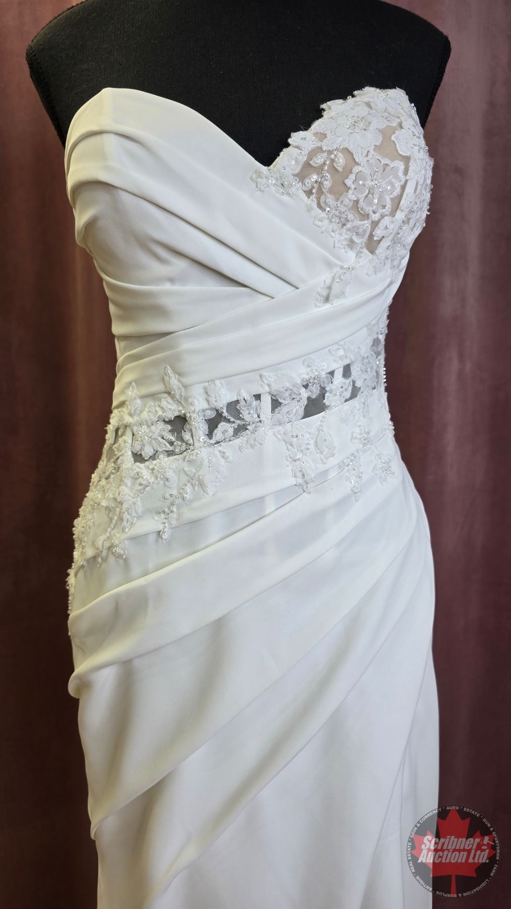 (Listing & Descriptions are a GUIDE ONLY and are subject to changes, errors, additions or deletions. The majority of dresses were fitted/cinched/clamped to mannequins for auction catalog pictures. See Tags in Pictures for Dress / Item Details if tagged. Many or all of the dresses have been tried on in the store as normal retail activity. Winning bidders may want to consider Drycleaning. Please use the provided pictures to satisfy yourself to the Conditions. There will NOT be garment bags provided, please bring your own when picking up dresses after the Auction concludes. Please bring help or assistance to load out store fixtures. Please Read & Understand All Terms & Conditions for this Auction Sale. There is designated dates & times for pick ups after the Auction.)