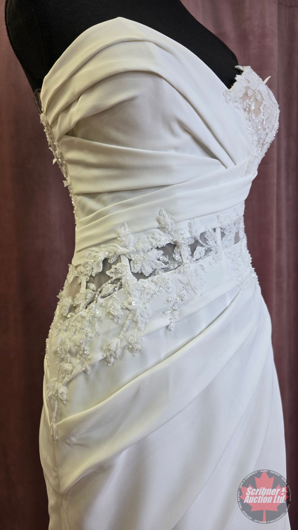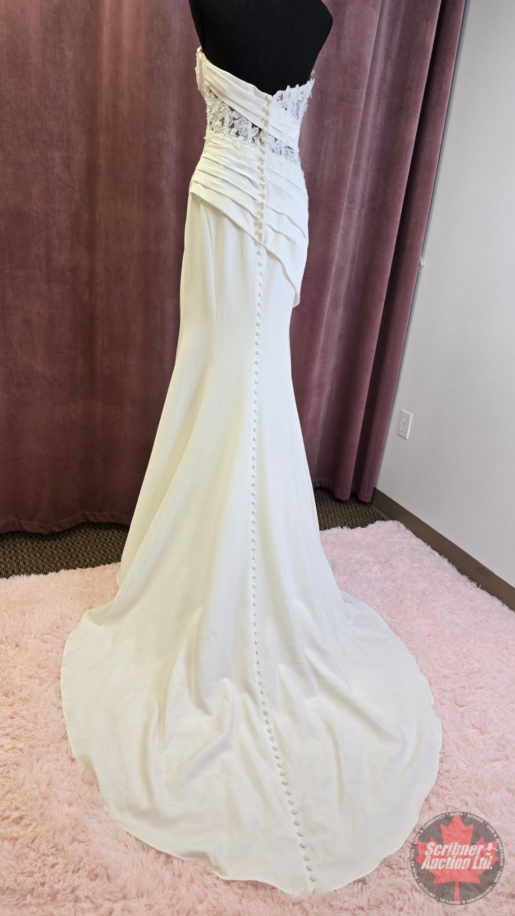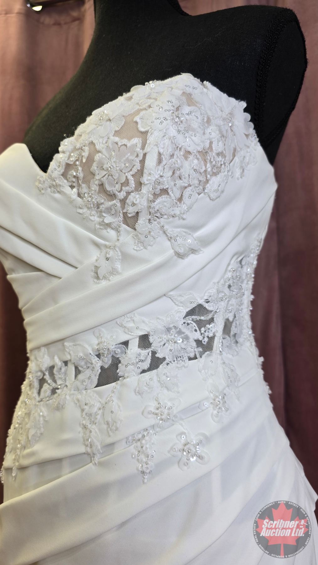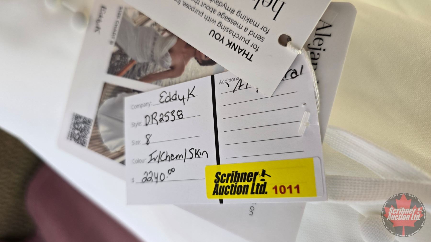 (Listing & Descriptions are a GUIDE ONLY and are subject to changes, errors, additions or deletions. The majority of dresses were fitted/cinched/clamped to mannequins for auction catalog pictures. See Tags in Pictures for Dress / Item Details if tagged. Many or all of the dresses have been tried on in the store as normal retail activity. Winning bidders may want to consider Drycleaning. Please use the provided pictures to satisfy yourself to the Conditions. There will NOT be garment bags provided, please bring your own when picking up dresses after the Auction concludes. Please bring help or assistance to load out store fixtures. Please Read & Understand All Terms & Conditions for this Auction Sale. There is designated dates & times for pick ups after the Auction.)