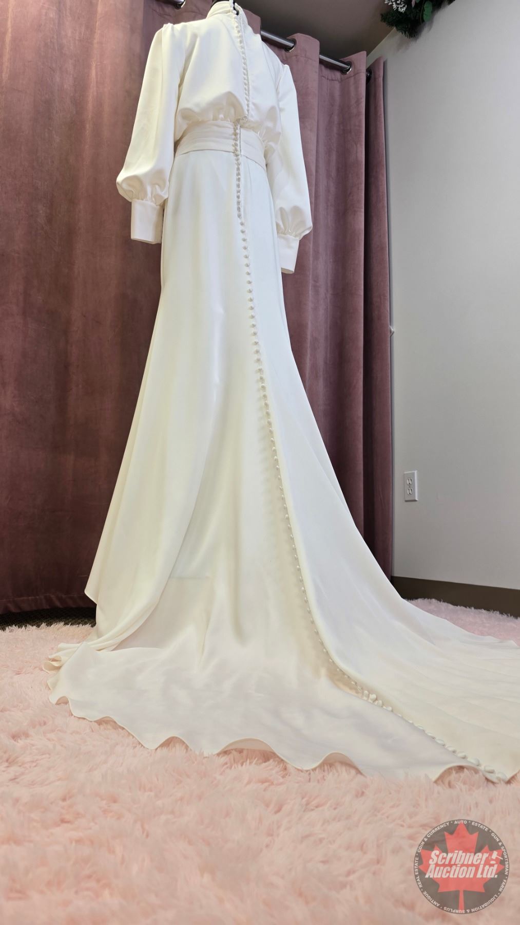 (Listing & Descriptions are a GUIDE ONLY and are subject to changes, errors, additions or deletions. The majority of dresses were fitted/cinched/clamped to mannequins for auction catalog pictures. See Tags in Pictures for Dress / Item Details if tagged. Many or all of the dresses have been tried on in the store as normal retail activity. Winning bidders may want to consider Drycleaning. Please use the provided pictures to satisfy yourself to the Conditions. There will NOT be garment bags provided, please bring your own when picking up dresses after the Auction concludes. Please bring help or assistance to load out store fixtures. Please Read & Understand All Terms & Conditions for this Auction Sale. There is designated dates & times for pick ups after the Auction.)