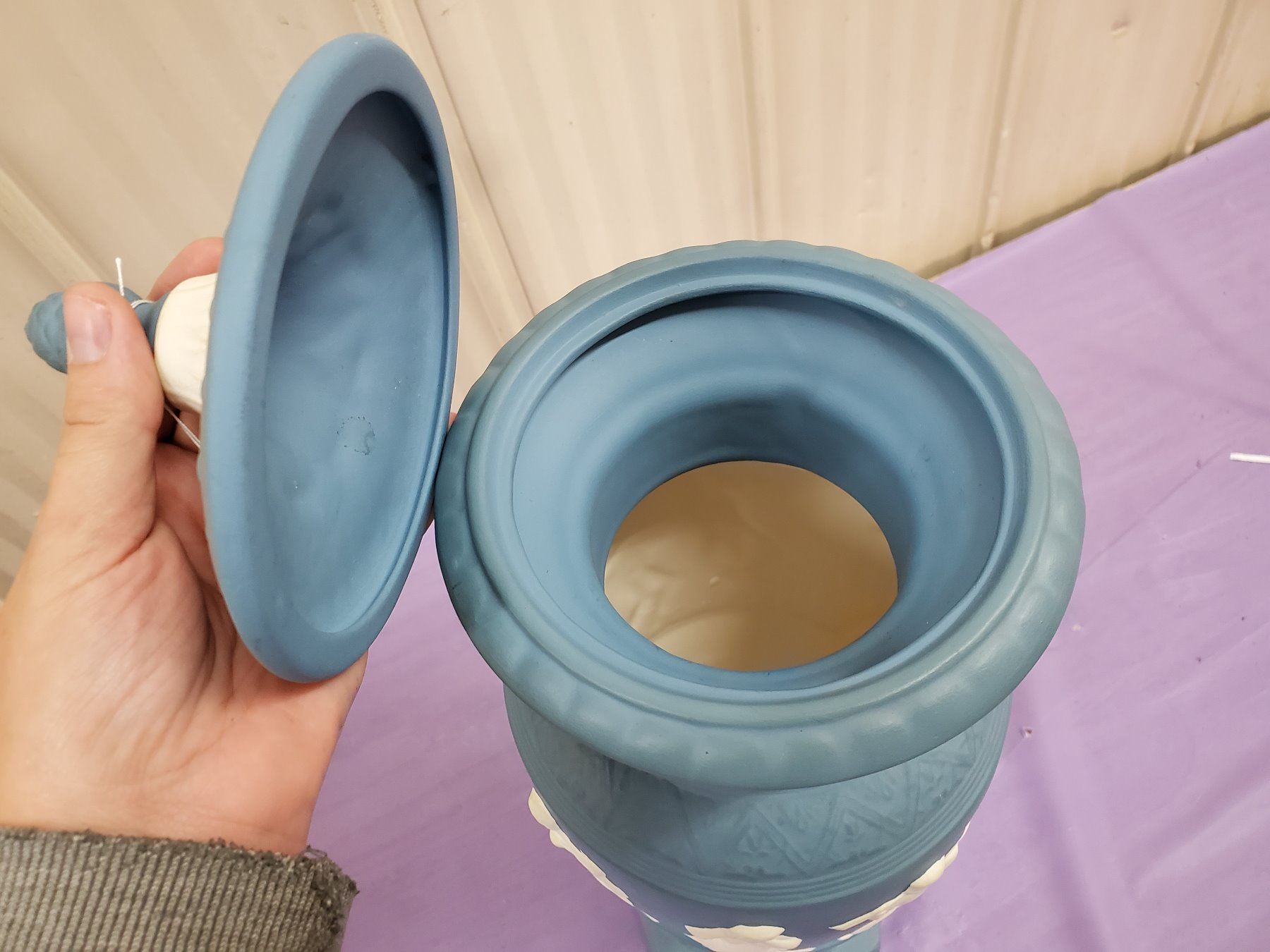 WEDGEWOOD STYLED TALL CASE WITH LID