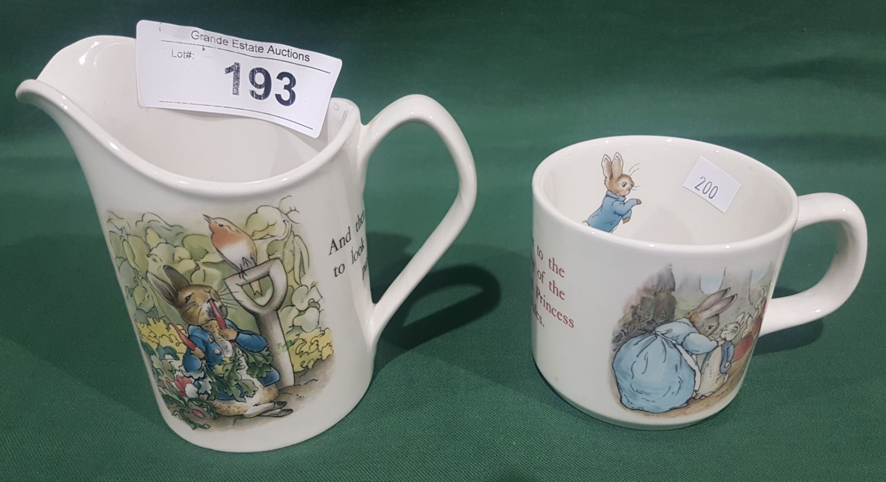 WEDGWOOD BEATRIX POTTER SERIES MILK PITCHER & MUG