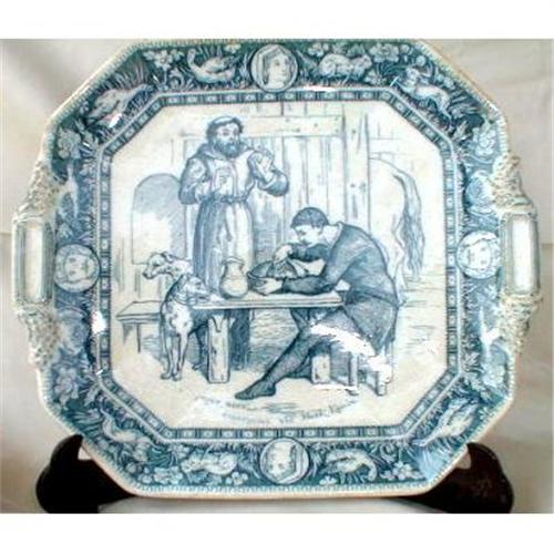 Great square serving plate with handles decorated with a scene
