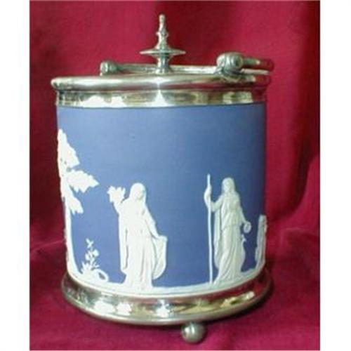 Beautiful antique Wedgwood Biscuit Barrel with silverplate frame