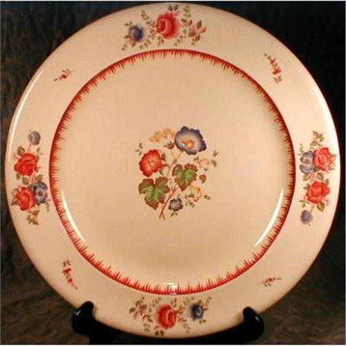 Large Wedgwood serving plater or Chop Plate. Antique inspired design of red and blue flowers on sepia ground.
