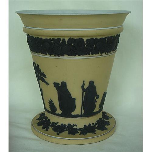 <tr><td>Title:WEDGWOOD YELLOW JASPER VASE BLACK RELIEF c1920</td></tr>
