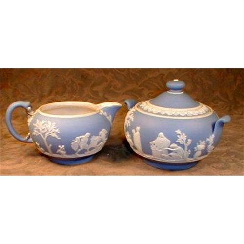 <tr><td>Title:WEDGwood JASPERWARE Creamer and Sugar - ANTIQUE</td></tr>
