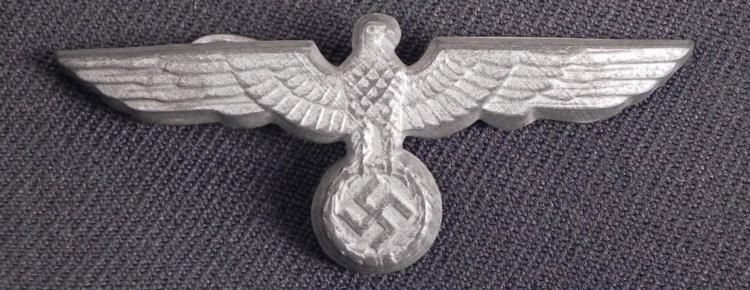WEHRMACHT EAGLE FOR VISOR HAT-2 1/2"-HAS ALL 3 PRONGS-ORIG * NICE REPLACEMENT OR COLLECTIBLE NAZI EAGLE & SWASTIKA