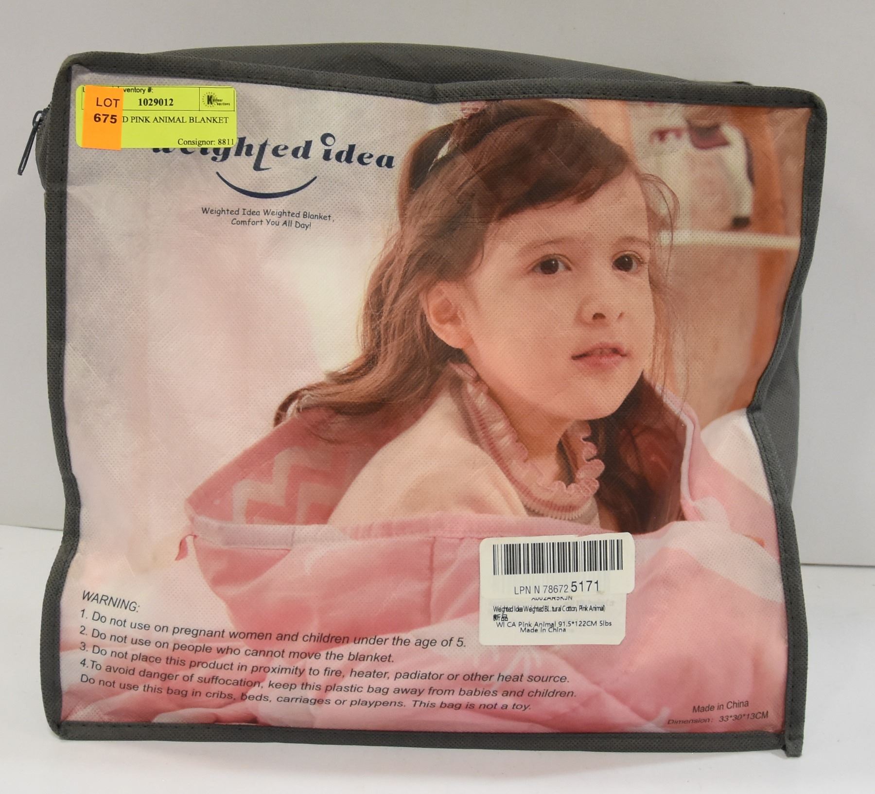 WEIGHTED PINK ANIMAL BLANKET 33" X 30"