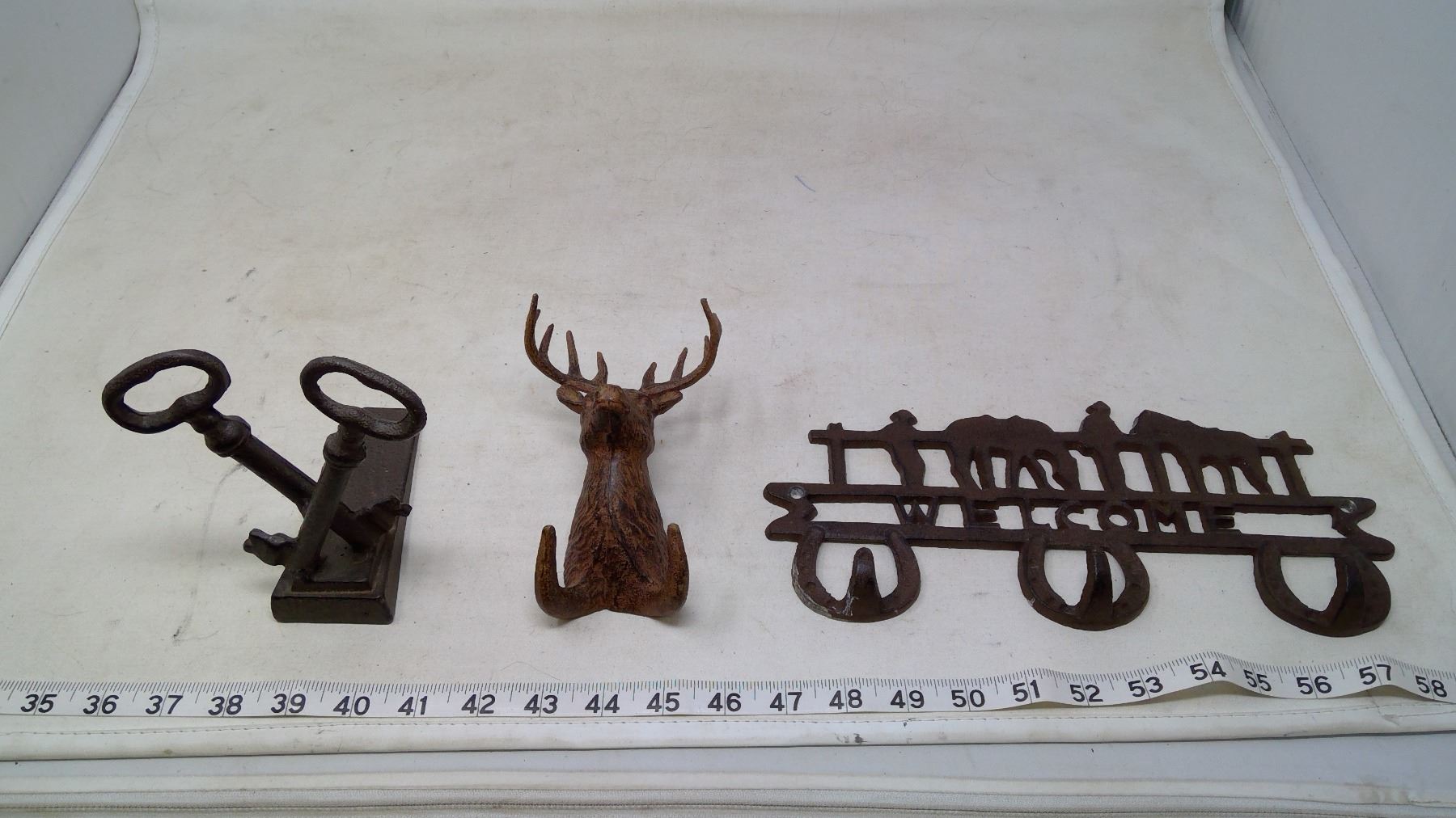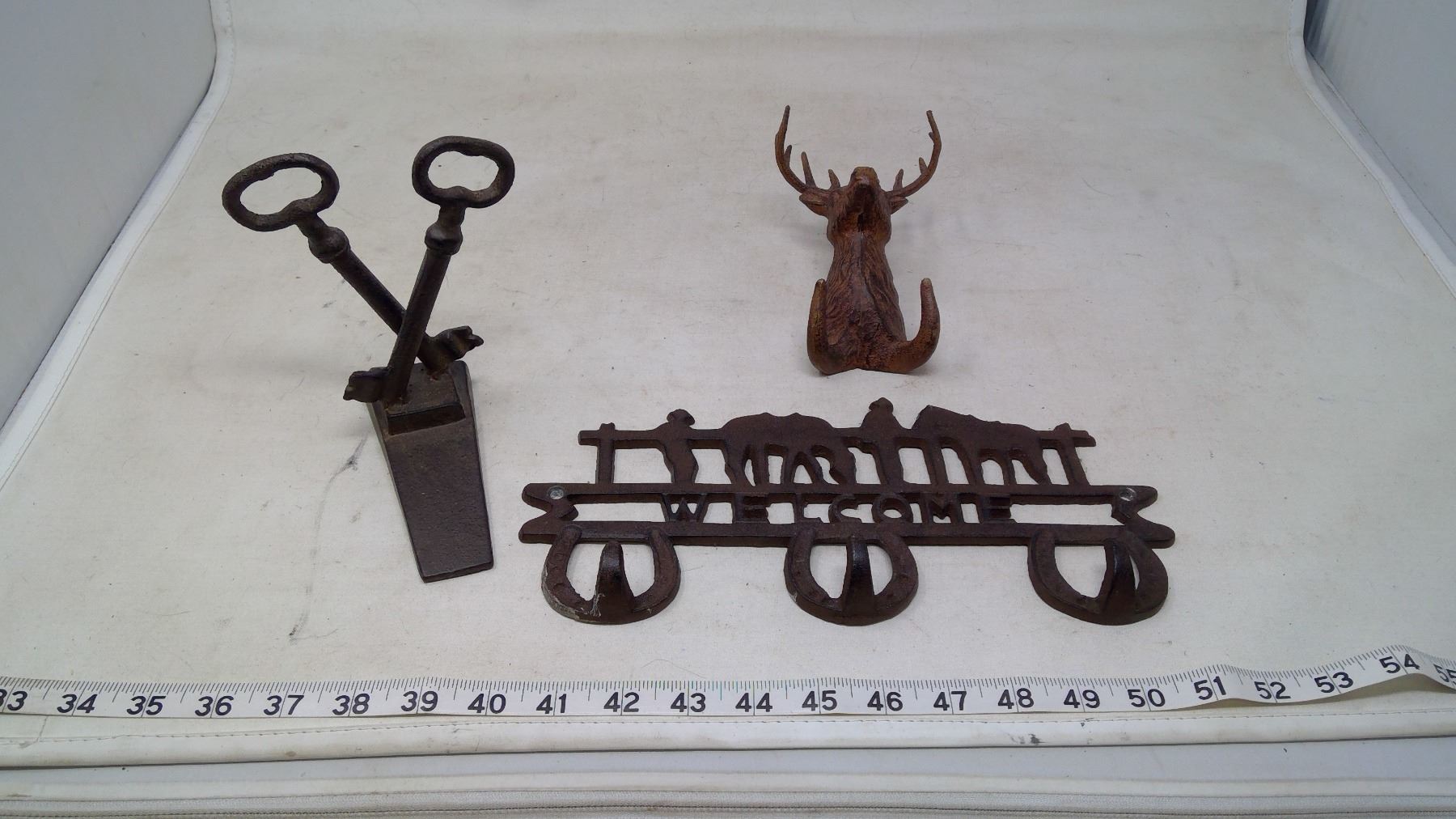WELCOME SIGN, DOOR STOP, DEER HOOK, ALL METAL