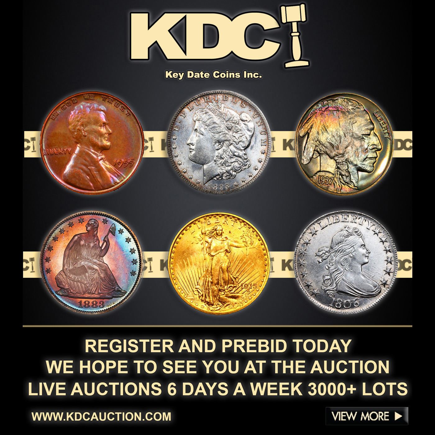 Key Date Coins may attempt to describe coins in advertising, on the internet, and during the auction. Any description referring to coin grade or condition is completely the subjective opinion of Key Date Coins and Key Date Coins makes no express or implied warranties based on the subjective descriptions of any coins being sold.