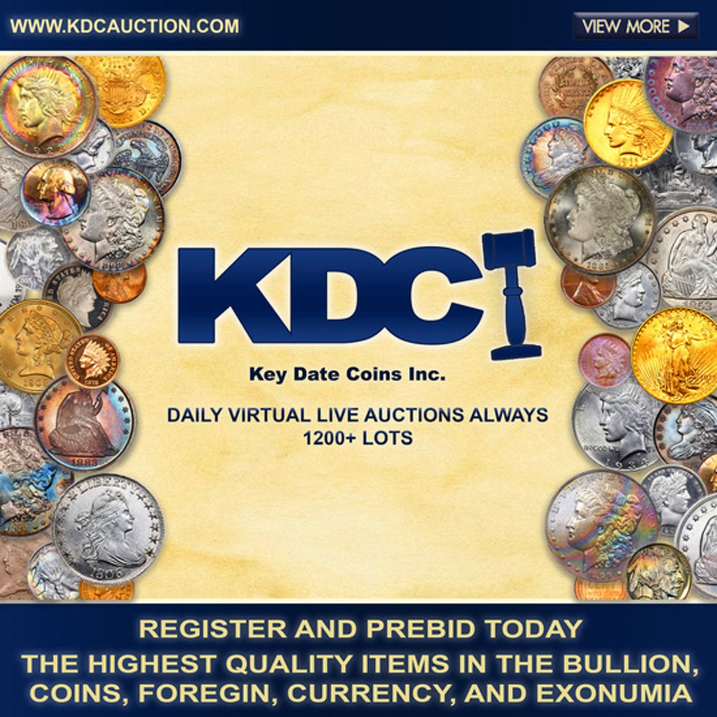 We want to make your auction experience with Key Date Coins as pleasant and pleasing as possible. If you have questions about the merchandise, the time to ask questions is well in advance of the live auction. No returns are allowed.