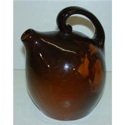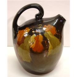 WELLER LOUWELSA HANDLED JUG. Marked on bottom "820-Oweneart-Utopian-2A". Shows signs of crazing. 6.5" H to top of handle.