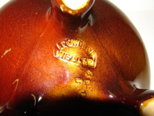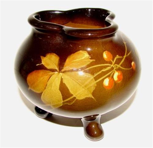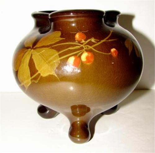 WELLER POTTERY LOUWELSA FOOTED VASE. Vine and berry decorated. Marked on bottom “Weller/Louwelsa”. 4.375” H