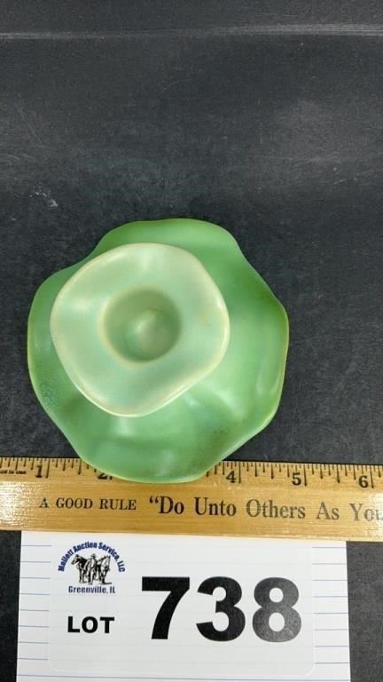 WELLER POTTERY GREEN MATTE CANDLE HOLDER