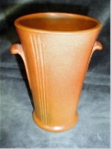 WELLER POTTERY TAPERED VASE, MARKED. 1929. 6"X 4", VELVA PATTERN.