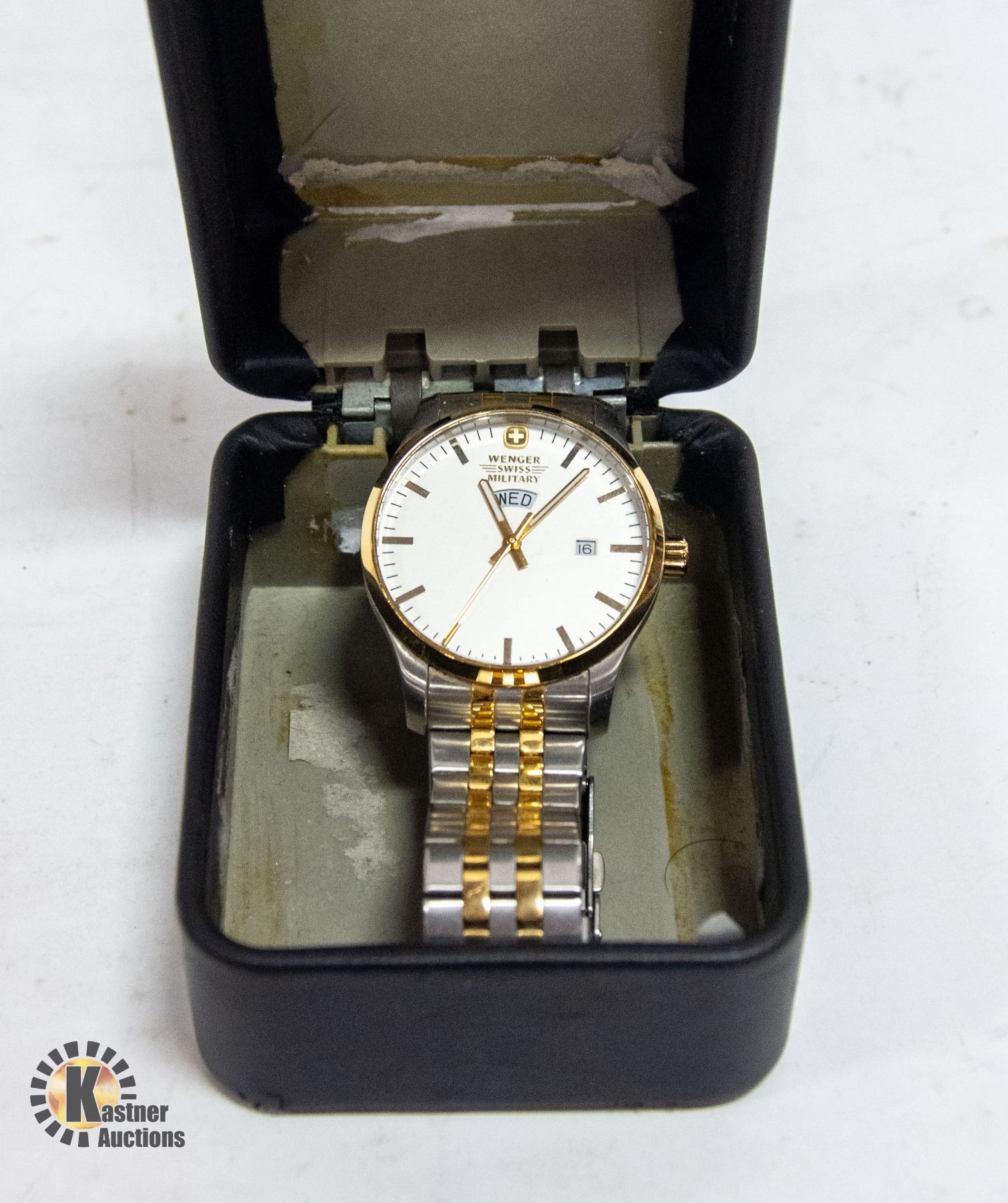 CASE. WITH DATE / DAY. NEW BATTERY, SWISS MADE **ALL ITEMS MUST BE REMOVED BY 5PM SATURDAY, FEBRUARY 17TH 2024. ALL REMAINING ITEMS WILL BE SUBJECT TO A $6.00 PER DAY STORAGE CHARGE. ANY ITEMS REMAINING AFTER MONDAY, MARCH 4TH, 2023 WILL BE CONSIDERED FORFEITED. NO REFUNDS WILL BE ISSUED FOR FORFEITED ITEMS. TO SCHEDULE A PICK UP APPOINTMENT CLICK HERE