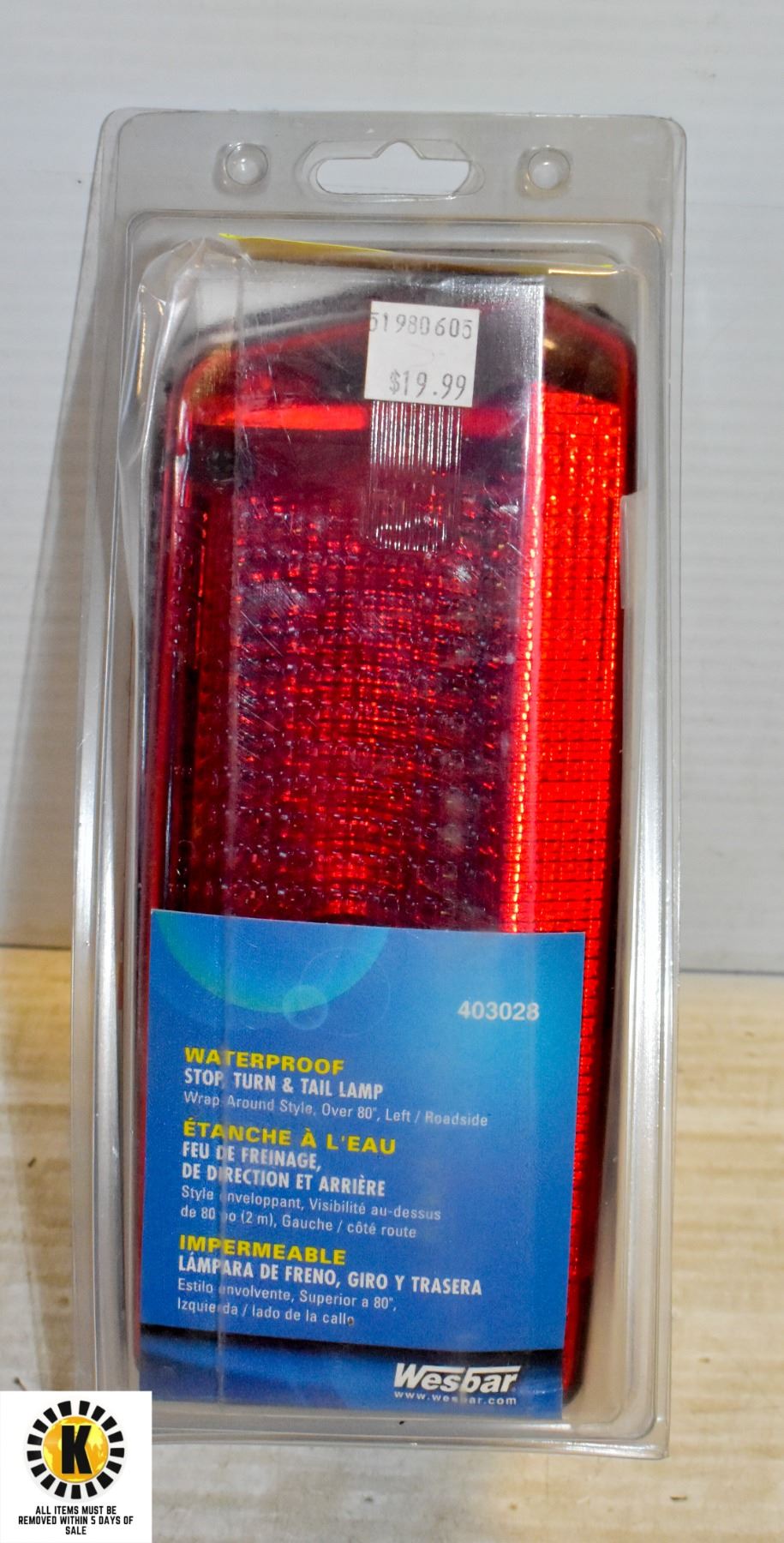 WATERPROOF, STOP/TURN/TAIL, RED, LEFT LAMP