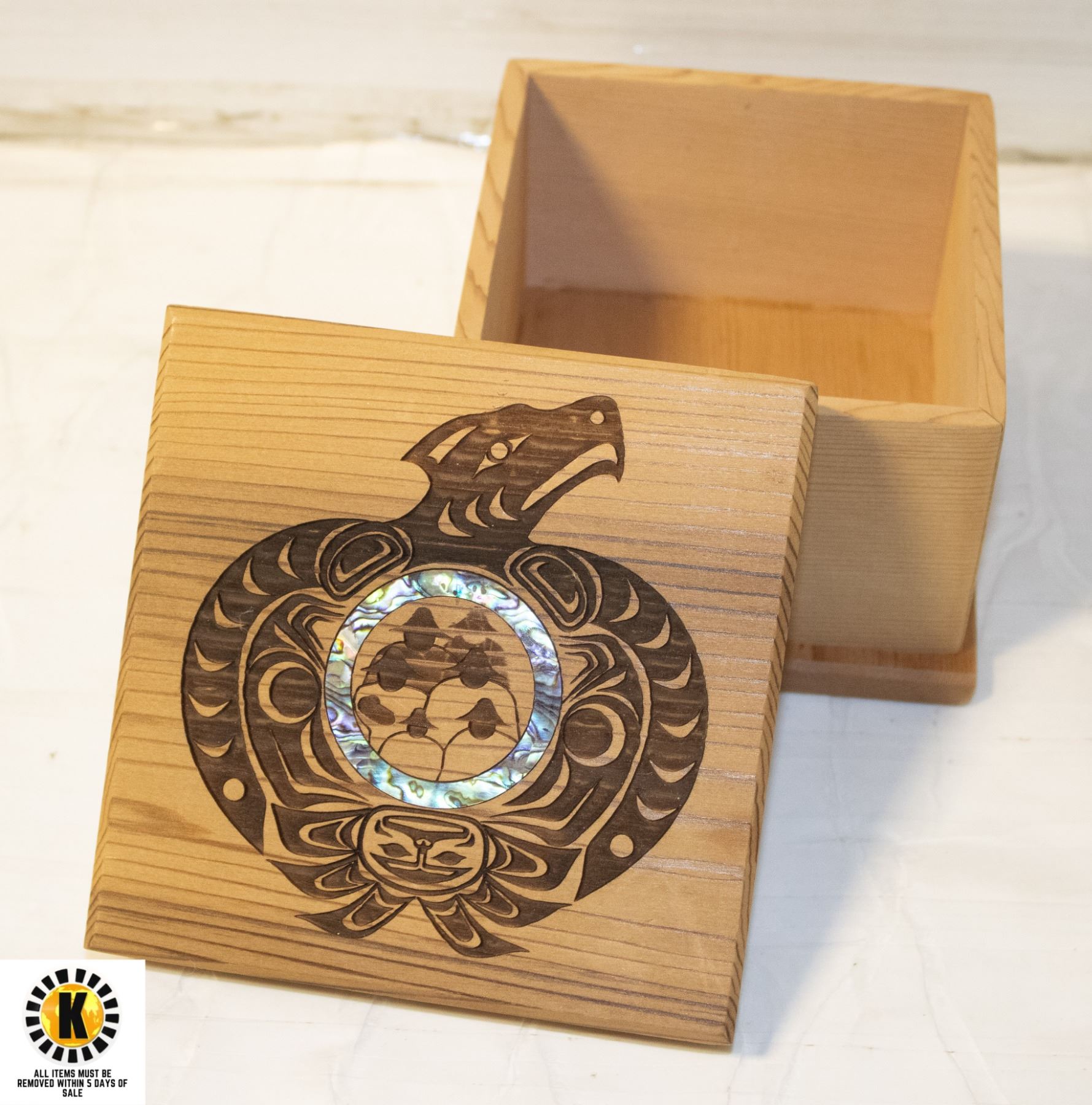 WEST COAST HAIDA CEDAR CARVED WOOD BOX, SHELL