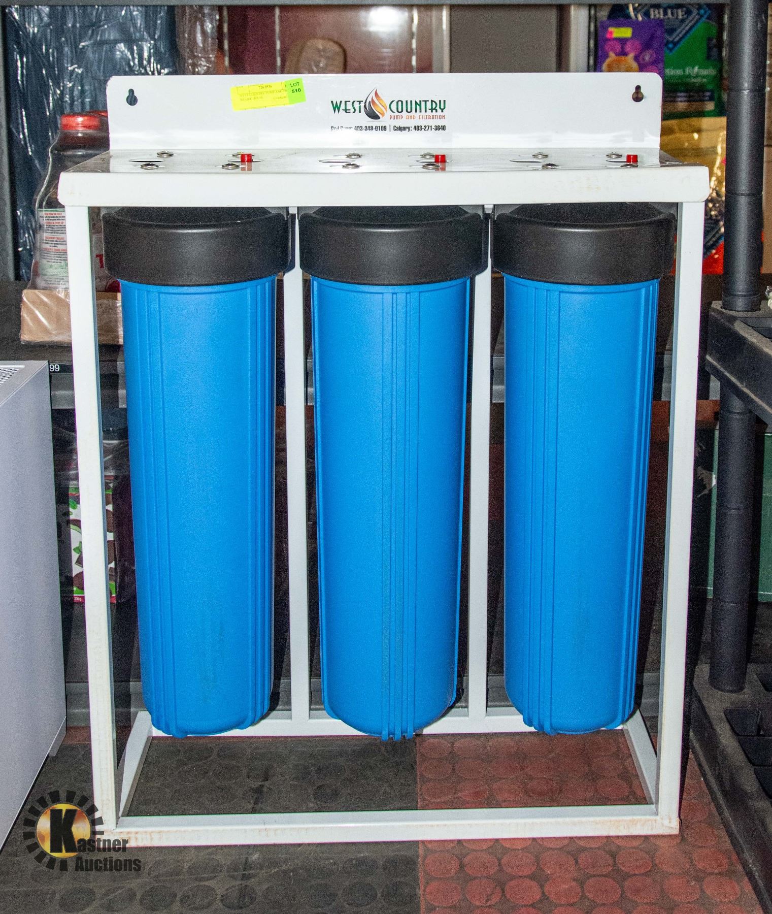 3 STAGE WATER FILTRATION SYSTEM, BIG BLUE, MAIN UNIT ONLY, AS IS CONDITION, MINOR DAMAGE TO METAL TOP FRAME, SEE PIC, AMZ SES **ALL ITEMS MUST BE REMOVED BY 5PM SATURDAY, SEPTHEMBER 16TH 2023. ALL REMAINING ITEMS WILL BE SUBJECT TO A $6.00 PER DAY STORAGE CHARGE. ANY ITEMS REMAINING AFTER MONDAY, OCTOBER 2ND, 2023 WILL BE CONSIDERED FORFEITED. NO REFUNDS WILL BE ISSUED FOR FORFEITED ITEMS. TO SCHEDULE A PICK UP APPOINTMENT CLICK HERE